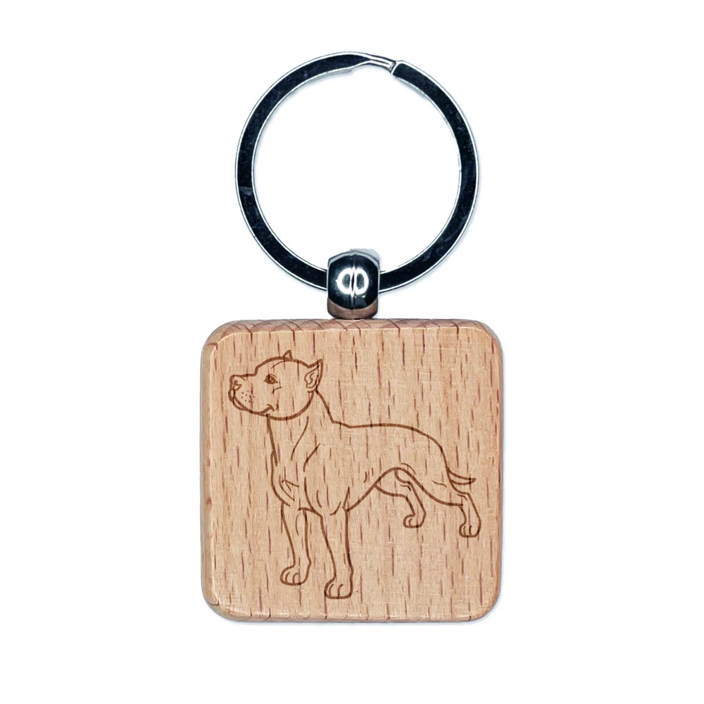 Friendly American Pit Bull Terrier Pet Dog Engraved Wood Square Keychain
