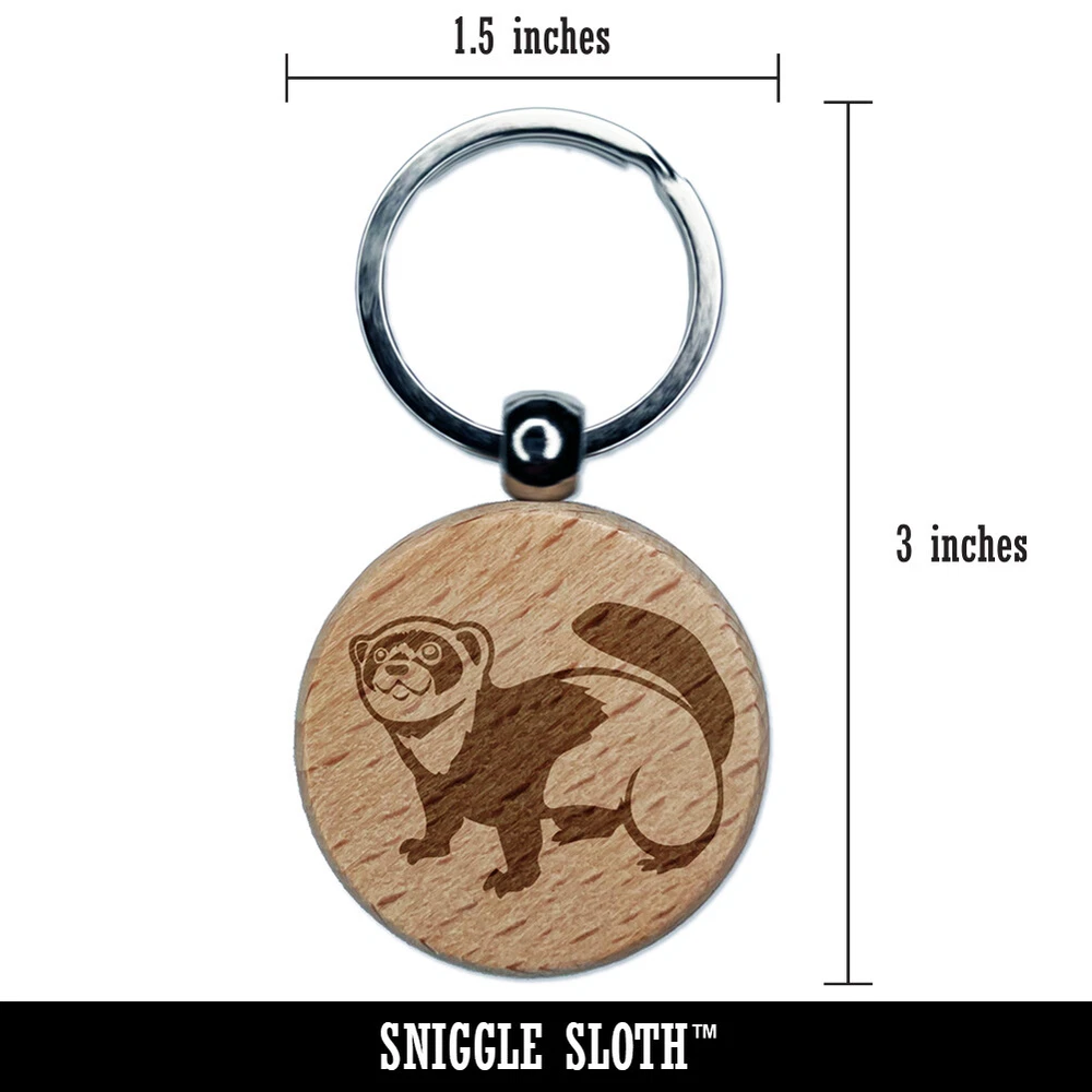Friendly Ferret Engraved Wood Round Keychain Tag Charm