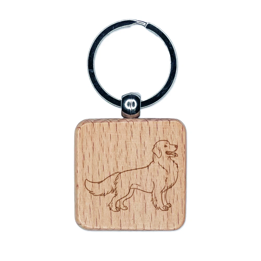 Friendly Golden Retriever Pet Dog Engraved Wood Square Keychain Tag Charm