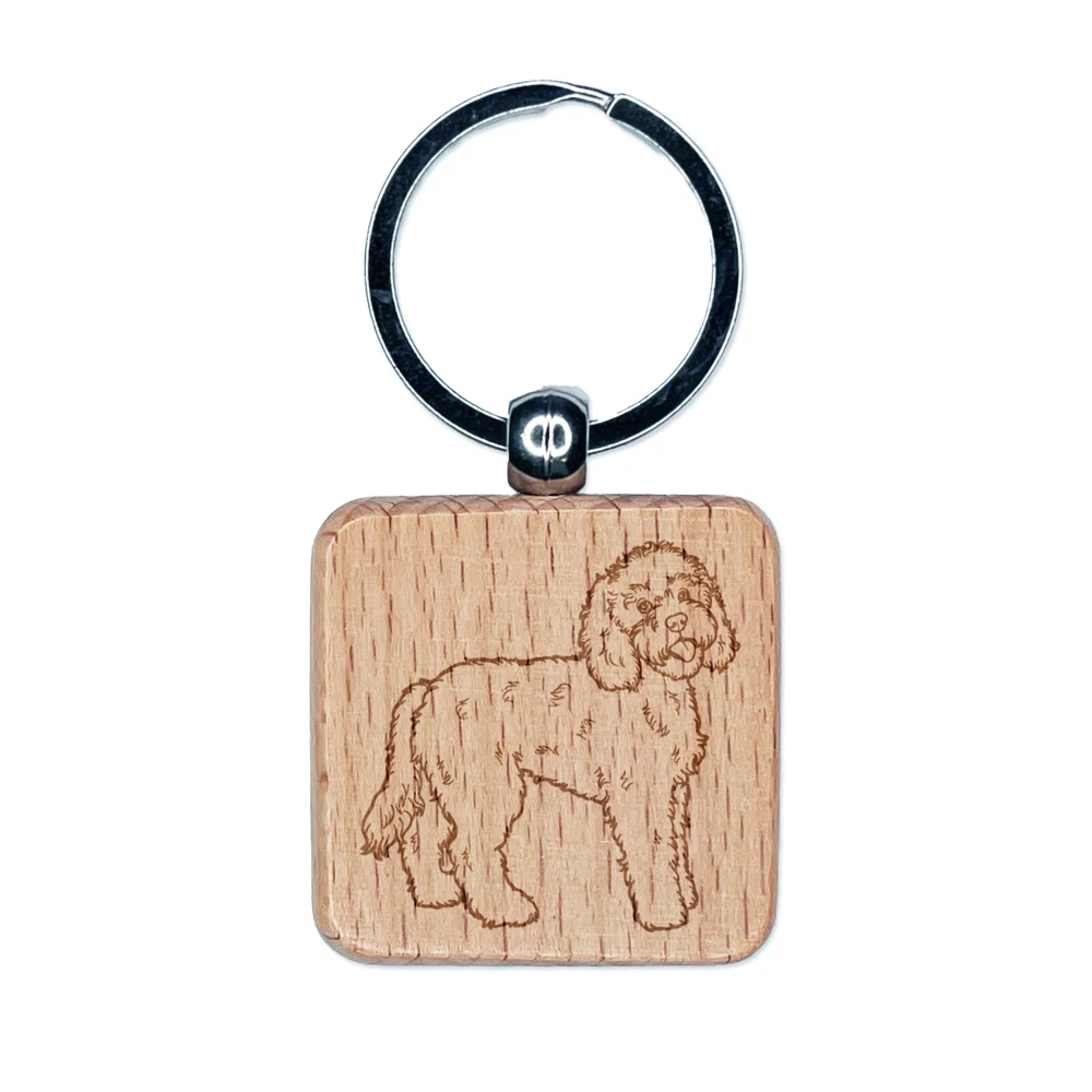 Friendly Labradoodle Pet Dog Engraved Wood Square Keychain Tag Charm