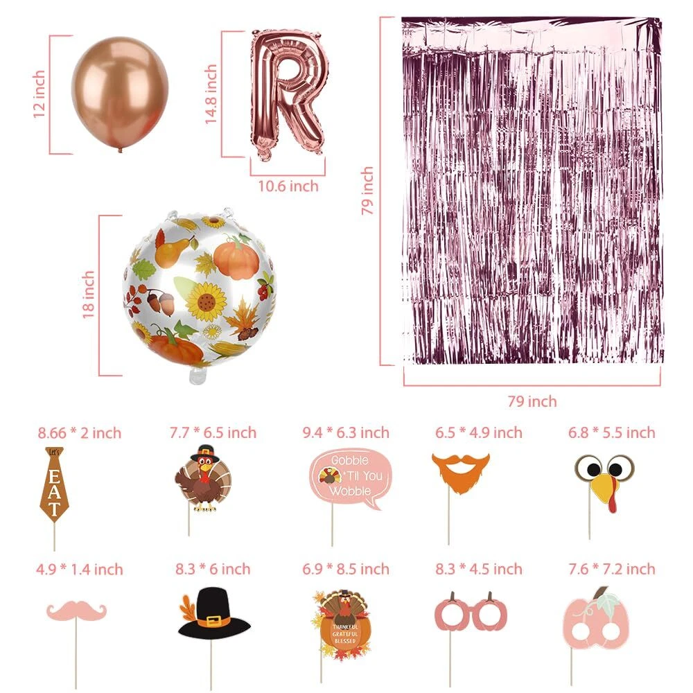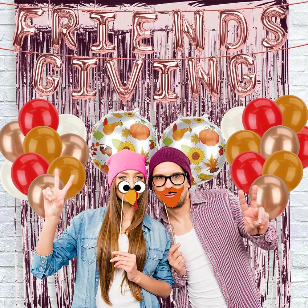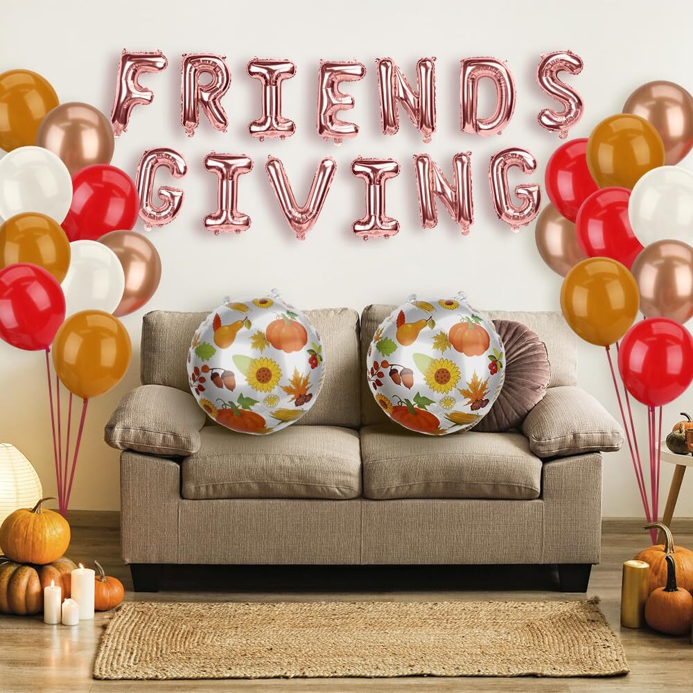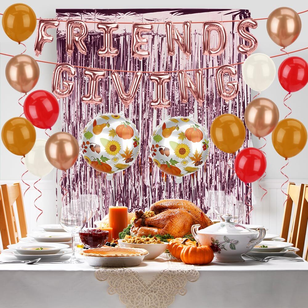 Friendsgiving Party Decor Kit with Pink Balloons and Thanksgiving Decorations