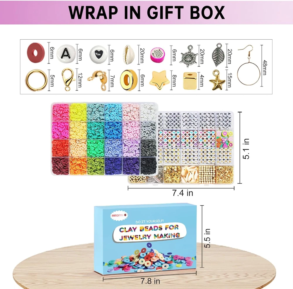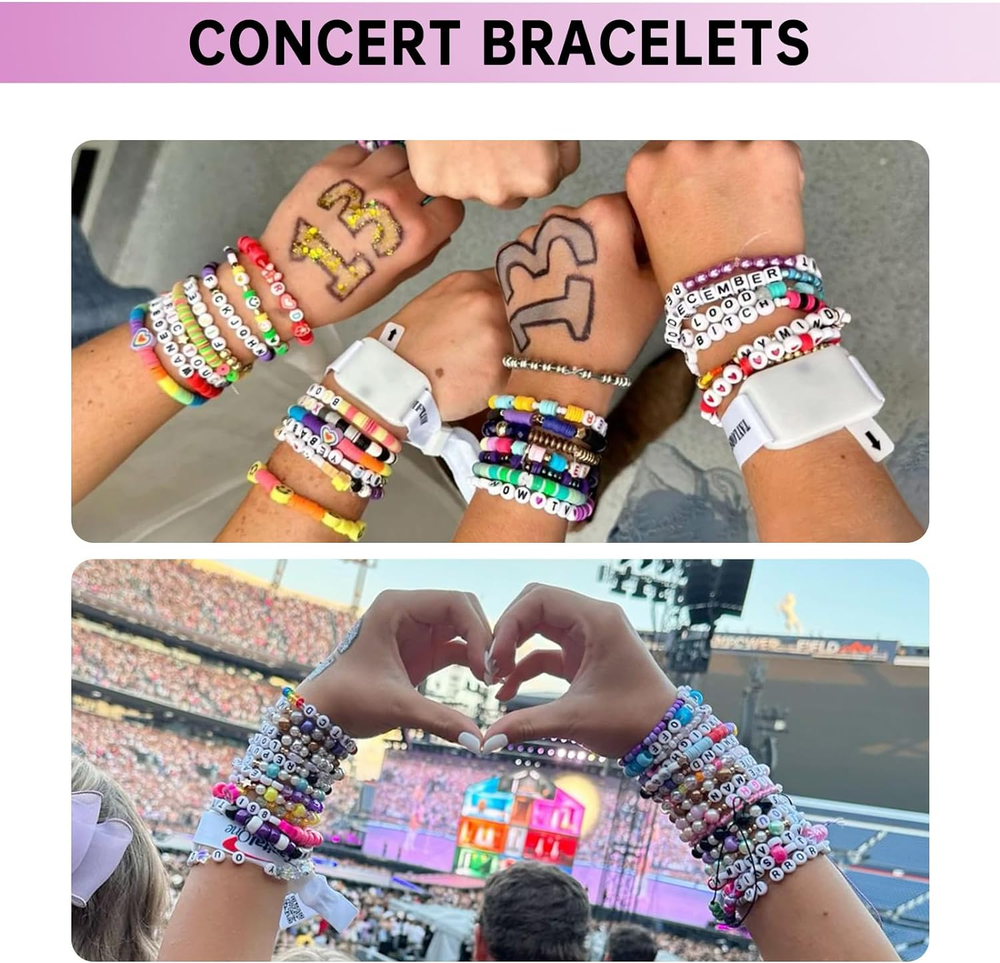 Perfect Friendship Bracelet Kit: Taylor S fans swifties gather! Friendship bracelets have been a key element of the Eras Tour. A full box of letter beads for jewelry making, spelled-out names, words, lyrics, album titles or phrases on the bracelets.You can try threading craft beads onto plastic string, then trade bracelets with each other at the party, showing friendship, love, and hope All You Need Included: The colors are bright and beautiful. This bead bracelet set contains 6240 6mm clay beads in 24 colors, 750 letter beads and some other beads including heart beads, star beads, pearls and flower beads, also a pair of plastic tweezers, a pair of scissors, and four rolls of elastic bracelet string cord Safe Material: Our clay beads are made of high quality polymer clay, the bead is 6mm in diameter, 2mm in hole diameter and 1mm in thickness.The kit comes with clear instructions that are easy to follow, ensuring that even beginners can quickly get the hang of bracelet making How fun this bracelet making kit is! You can give full play to your creativity. It contains everything you need to get started on making pretty earrings and bracelets. In addition, you can also make handicrafts such as rings, anklets, waist chains and mobile phone pendants.This clay bead kit is a popular gift for children (ages 4+) or adults who love to express their imagination. A meaningful and delightful gift choice for birthdays, Valentine's Day, Mother's Day, Christmas, Thanksgiving, etc Concert Bracelets Merch: This clay beads bracelet making kit has so many different colors, beads, charms, etc. for a child or teen to keep them busy for a long time. Whether your child is crafting solo or hosting a jewelry-making party with friends, this kit is sure to provide hours of creative fun Quality Promise: Customer complete satisfaction is very important to us. If you find any problem with our bracelet beads, please feel free to contact us. We promise to give you a satisfactory solution within 24 hours. Thank you for supporting our brand Redtwo Product Description The video showcases the product in use. The video guides you through product setup. The video compares multiple products. The video shows the product being unpacked. Use these clay beads to spell out your name, words, lyrics or album title onto the friendship bracelet, and you can choose to wear it yourself, give it to relatives and friends as a gift, or exchange it with other fans during the concert.