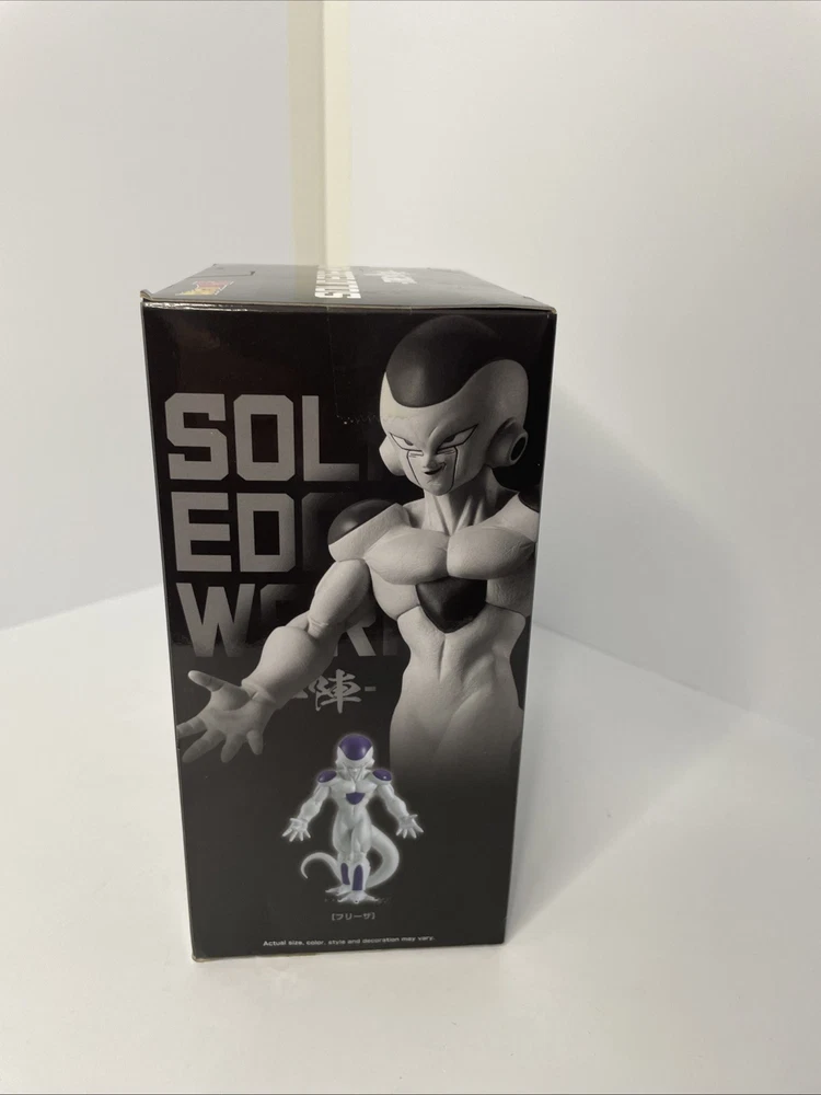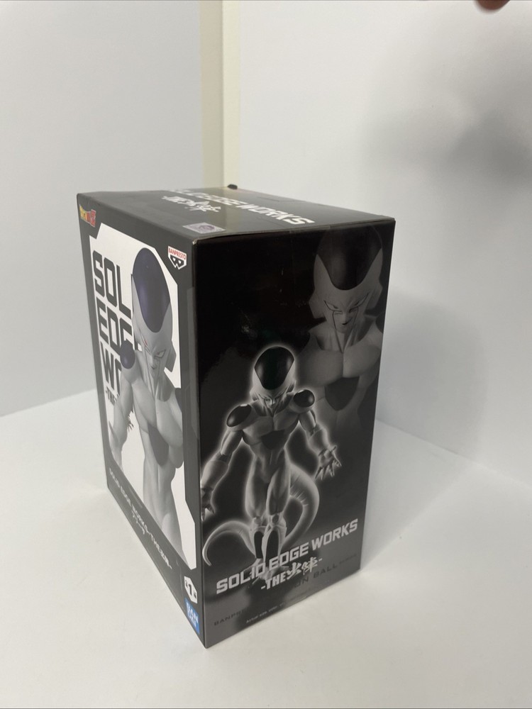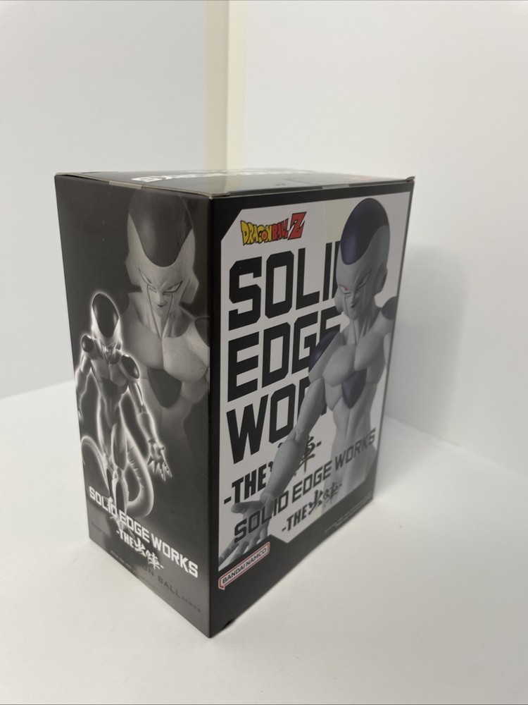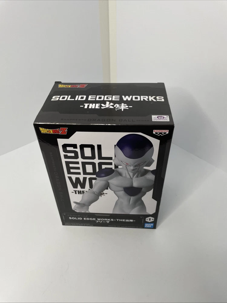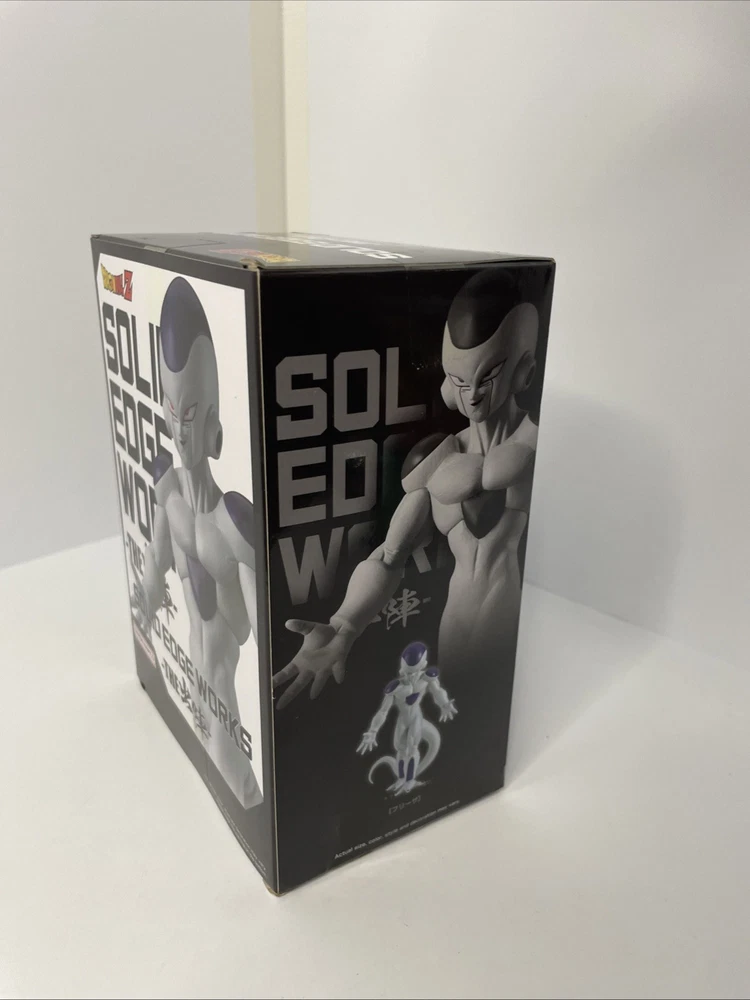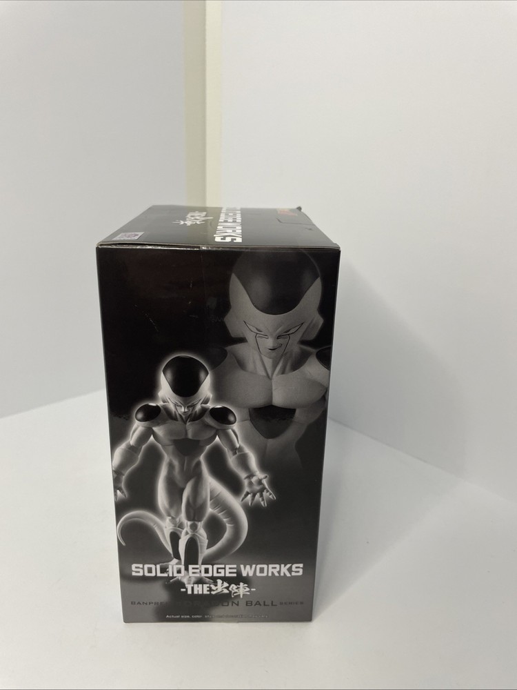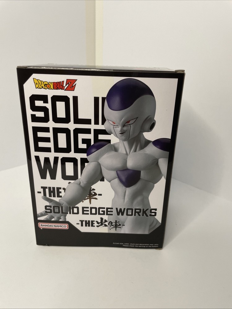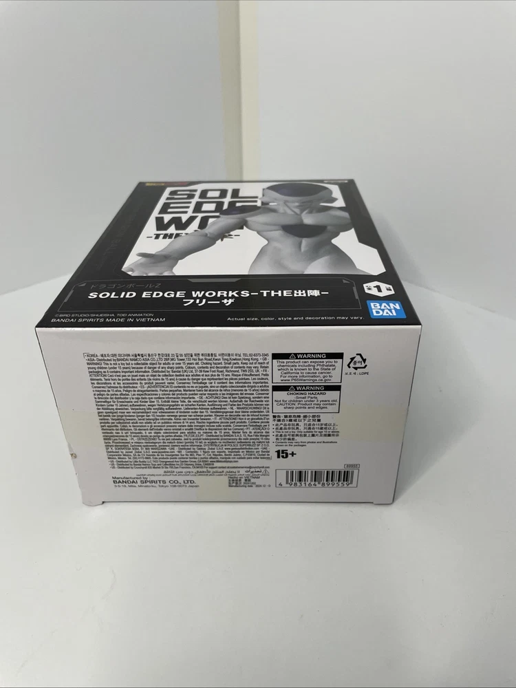 Dragon Ball Z Solid Edge Works Frieza figure. This figure is part of the Solid Edge Works series, specifically Vol. 15, and depicts Frieza in a pose from the Namek Saga, facing off against Goku. The packaging includes the Dragon Ball Z logo, the Banpresto brand, and the name "Frieza" in both English and Japanese (フリーザ). The figure itself is approximately 6.7 inches (17cm) tall and is made of plastic. It showcases Frieza's distinctive white and purple color scheme, along with detailed sculpting that captures his appearance from the anime. The box also features the "SOLID EDGE WORKS -THE 出陣-" (SOLID EDGE WORKS -THE Departure-) title, indicating the figure's theme. It is manufactured by Bandai Spirits in Vietnam. The Frieza Solid Edge Works Figure is a highly detailed statue inspired by the iconic character from Dragon Ball Z. Produced by BANPRESTO, this collectible figure captures the essence of the character with its ABS and PVC construction. Standing at 6 inches tall and weighing 16 ounces, this original piece is a must-have for any fan of the Dragon Ball franchise. With its anime and manga theme and packaging, this statue is a perfect addition to any anime and collectibles collection, reflecting the intricate world of Dragon Ball Z.