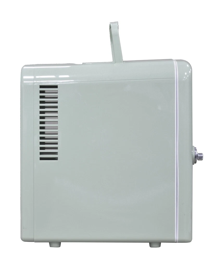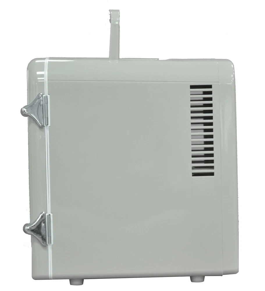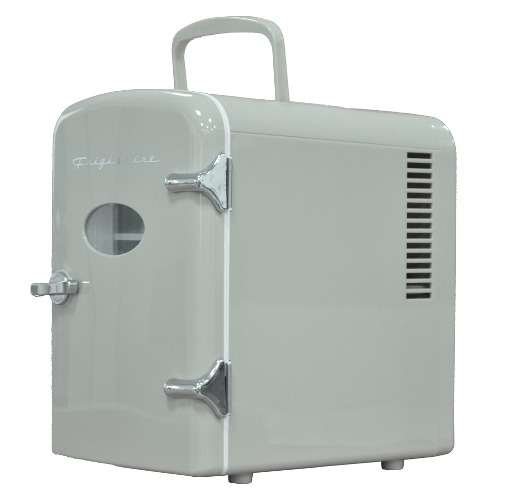 Experience the ultimate convenience and versatility with the Frigidaire Retro 6 Can Mini Beverage/Skincare Cooler. This compact powerhouse offers versatile storage, accommodating 6 cans or organizing your skincare essentials for a refreshing daily routine. With its portable design and carrying handle, you can take it anywhere and place it on any surface with ease. The heavy-duty construction ensures secure storage, while its furniture-friendly design eliminates worries of scratches. The convenient viewing window allows you to see what's inside without opening the door, and the easy-to-clean interior ensures effortless maintenance. Powered by a 110V wall outlet or a 12V car adapter, Indulge in the perfect blend of functionality and style with this exceptional mini fridge. Accommodates up to 6 cans/4L, providing ample space to keep your favorite beverages OR SNACKS KEEPING IT refreshingly chilled. STORE YOUR moisturizers and beauty tools inside for a refreshing take on your daily skincare routine Compact and portable with a convenient carrying handle for on-the-go use Features a heavy-duty locking latch and door hinge for secure closure Viewing window allows easy monitoring of contents Easy-to-clean, fully insulated interior ensures a hygienic storage environment Utilizes a thermoelectric cooling system for quiet, vibration-free, and efficient operation Powered by a 110V (AC) wall outlet, offering flexibility in usage locations Includes cords for both 12V car adapter and home outlet, providing versatile power options. Our mini beverage fridge is engineered to chill beverages 26-28°F below the ambient temperature. However, the extent of cooling achieved may vary based on the surrounding environment.