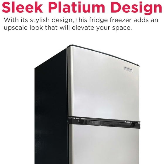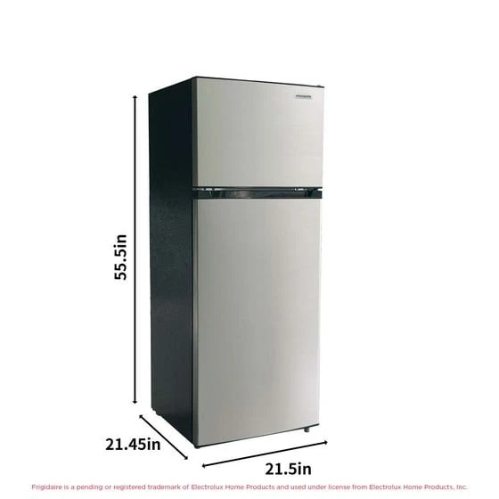About this item Product details Your Frigidaire 7.5 cu. ft. Top-Freezer Refrigerator with Platinum design look features upfront temperature controls that make it simple to regulate both the fresh food and freezer sections. Adjustable shelves provide flexibility to meet your food storage needs. Combines easy-to-use features with practical design to complement any kitchen. Maintenance is easy with the convenient cycle defrost system and finding your favorite beverages is a breeze due to the tall bottle storage in the door. There are three adjustable glass refrigerator shelves and one adjustable/removable wire freezer shelf to provide maximum and versatile storage space. Your vegetables will stay cool and easy to find in the glass cover crisper. Left or right-handed opening is your choice with the reversible door hinge and this sturdy refrigerator can be installed against a wall with its smooth back design. 7.5 cu. ft. of standard storage capacity lets you stock up on all of your favorite foods Easily accessible temperature controls make temperature management easy New Spill-proof glass shelves contain spills and simplify cleanup, preventing liquids from leaking on to shelves below Sleek platinum design adds a touch of elegance to any space Transparent crisper for easy visibility and organization of fresh produce Interior light illuminates the contents for convenient access, even in low light Reversible door allows for flexible placement and convenient access options Dedicated freezer compartment for frozen food storage Adjustable and removable glass shelves for customizable storage options Full-width door bin for convenient storage of bottles and larger items More details Volts 115 V Brand Frigidaire Model EFR780-6COM Refrigerator Feature Freezer, Reversible Door Hinges Assembled Product Weight 83 lb Manufacturer Part Number EFR780-6COM Manufacturer CURTIS INTERNATIONAL LTD. Number of Shelves 4 Shelf Material Glass Number of Drawers 1 Number of Bins 5 Installation Type Freestanding Assembled Product Dimensions (L x W x H) 21.50 x 21.45 x 55.50 Inches