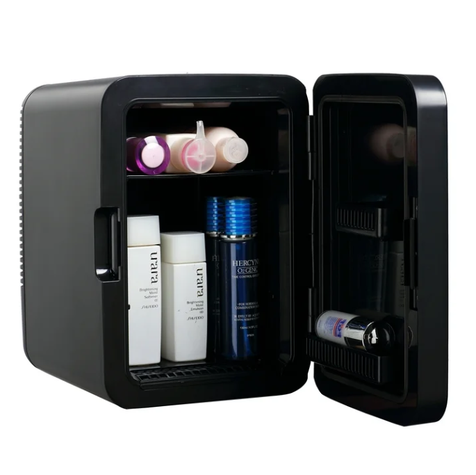 This silver stainless steel compact refrigerator keeps drinks, snacks, small meals, and skincare products ice-cold, with a fun, retro-inspired design that infuses a little fun into everyday life. The Frigidaire mini-fridge is built to last, using the same robust technology that has made Frigidaire one of the most trusted names in household appliances for nearly a century. Two shelves allow for storing multiple items, and an in-door shelf allows you to easily store any sheet mask when using it as a skincare fridge. A vintage logo enhances the nostalgia-inspired look and feel. Versatile Storage: Conveniently store snacks, beverages, medication, breast milk, insulin, and skin care products with ease. Compact and Portable: Fits perfectly on your desk, bookshelf, or any handy spot in your home or office. Ample Capacity: This mini fridge can hold up to 15 cans or 10 liters of your favorite items. Makeup Storage Solution: Perfect for organizing your makeup at home or while on the go. Extend Product Shelf Life: The thermoelectric cooling system chills your skincare products, helping to extend their shelf life. Stylish Retro Design: A fun and attractive stainless steel design adds a touch of retro charm to your space. Whisper-Quiet Cooling: Enjoy dependable thermoelectric cooling that operates quietly and free from vibrations. Our mini beverage fridge is engineered to chill beverages 26-28°F below the ambient temperature. However, the extent of cooling achieved may vary based on the surrounding environment. Multiple Storage Options: Two shelves offer ample storage for various items, and the in-door shelf is ideal for holding sheet masks and more. Perfect for Any Space: Ideal for dorm rooms, vehicles, cubicles, nurseries, or any place where you need simple drink storage. Secure Locking Latch: Keep your items safe and secure with the built-in locking latch. Energy-Efficient: This economical design consumes significantly less power than a traditional refrigerator. Please allow 2 hours for it to reach the optimal temperature. Dual Power Options: It conveniently plugs into a 12V car adapter or a home outlet, and both cords are included for your convenience. Stylish Stainless Steel: The sleek and modern stainless steel silver finish complements any decor.