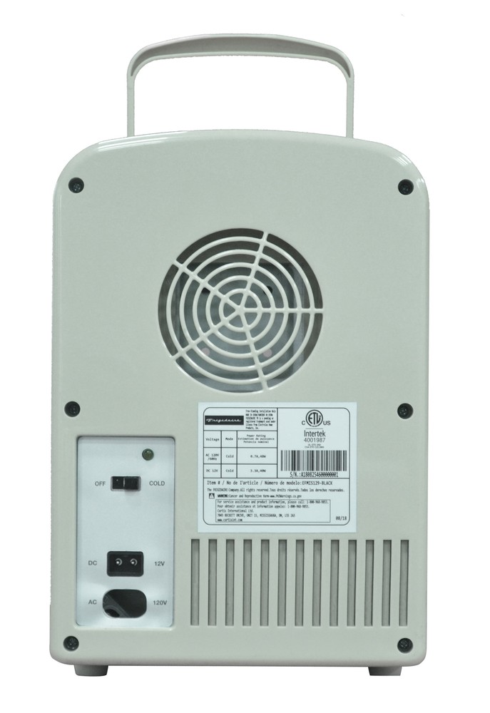 Experience the ultimate convenience and versatility with the Frigidaire Retro 6 Can Mini Beverage/Skincare Cooler. This compact powerhouse offers versatile storage, accommodating 6 cans or organizing your skincare essentials for a refreshing daily routine. With its portable design and carrying handle, you can take it anywhere and place it on any surface with ease. The heavy-duty construction ensures secure storage, while its furniture-friendly design eliminates worries of scratches. The convenient viewing window allows you to see what's inside without opening the door, and the easy-to-clean interior ensures effortless maintenance. Powered by a 110V wall outlet or a 12V car adapter, Indulge in the perfect blend of functionality and style with this exceptional mini fridge. Frigidaire Retro 6 Can Mini Beverage/Skincare Cooler, Moonbeam, 4L Accommodates up to 6 cans or 4L, providing ample space to keep your favorite beverages or snacks refreshingly chilled Store your moisturizers and beauty tools for a refreshing take on your daily skincare routine Compact and portable design with a convenient carrying handle for on-the-go use Features a heavy-duty locking latch and door hinge for secure closure Viewing window allows easy monitoring of contents Easy-to-clean, fully insulated interior ensures a hygienic storage environment Utilizes a thermoelectric cooling system for quiet, vibration-free, and efficient operation Powered by a 110V (AC) wall outlet, offering flexibility in usage locations Includes cords for both 12V car adapter and home outlet, providing versatile power options Engineered to chill beverages 26-28°F below the ambient temperature, with cooling efficiency varying based on the surrounding environment