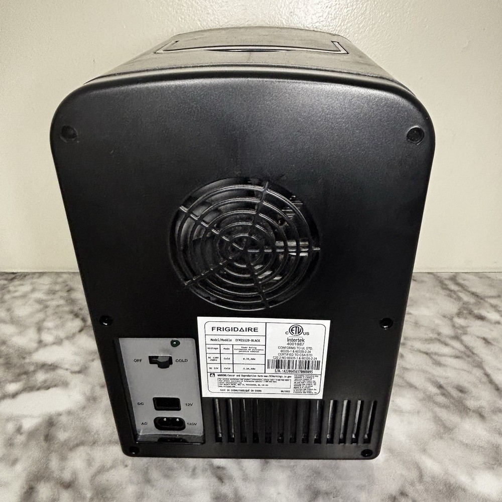 Model: Frigidaire EFMIS197 Number of Drawers: 1 Cable Length: none Door Style: Single Door Bottle Capacity: Less Than 6 Operating Sound Rating: Less Than 25 dB Installation: Countertop California Prop 65 Warning: none Ice Maker Location: Above Refrigerator Smart Home Protocol: Bluetooth Item Height: Less Than 15 in Color: Black EC Range: A+++ - G Number of Doors: 1 Brand: Frigidaire Open Door Width: Less Than 20 in Country/Region of Manufacture: China Item Depth: none Type: Portable Fridge Finish: Matte Item Width: Less Than 10 in Material: plastic Features: Retro Style, Quiet, Frost Free Defrost Method: Manual Defrost Number of Shelves: 1 Power: Less than 200 W Smart Home Compatibility: none Energy Consumption per Year: Less than 200 kWh Capacity: 9 Cans Number of Freezer Compartments: 1 Manufacturer Warranty: 1 Year