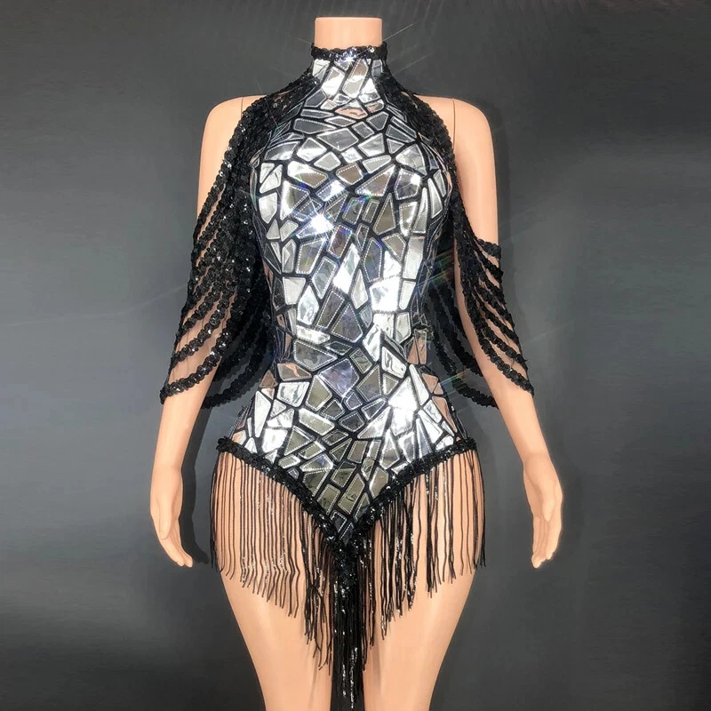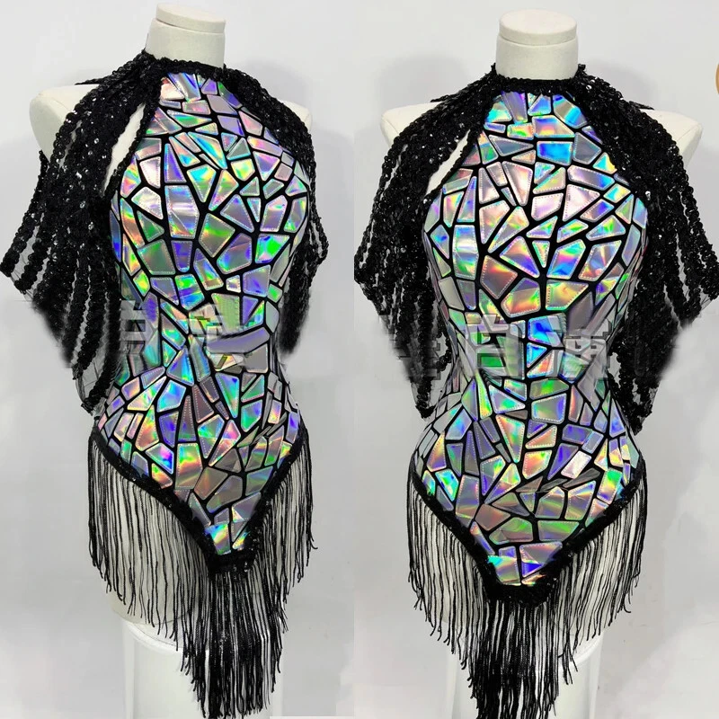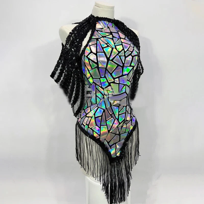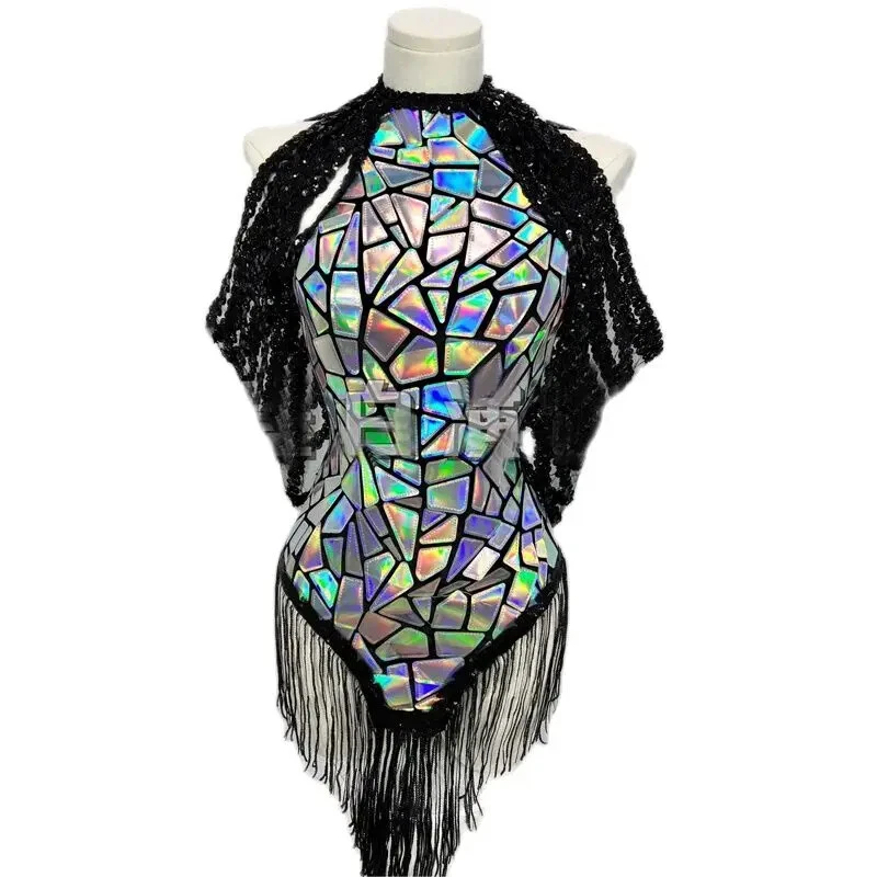 $ 52.8Purple Sequined Stretch Bodysuit with Tassels for Drag Queens and Performers