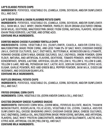 Frito-Lay Classic Mix Variety Pack Chips is an American snack assortment featuring Balsamic Vinegar flavored chips. Each 40-gram serving contains 101-200 calories. The pack includes 50 single-serve bags, GMO-free, and made in the United States. It is a pantry staple from the brand Frito-Lay2GO.