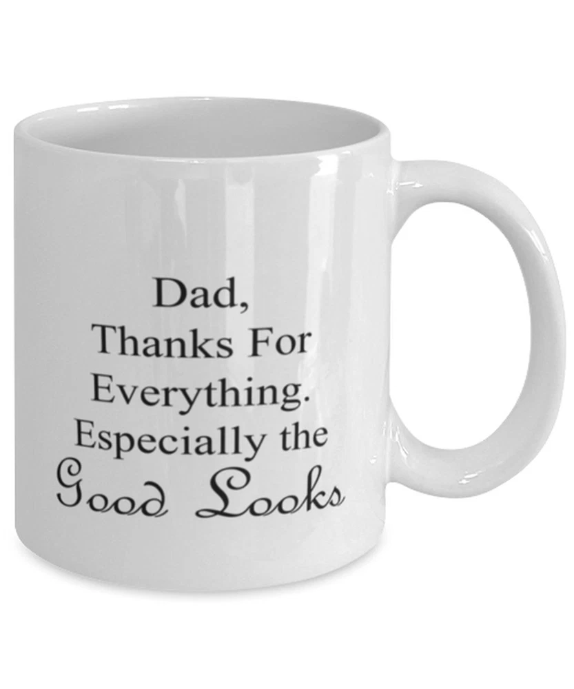 From Daughter Son Funny Coffee Mug Dad Thanks For Everything Especially The Good Product Details.. This high quality 11oz. ceramic white mug has a premium hard coat that provides crisp and vibrant color reproduction sure to last for years. Perfect for all hot & cold beverages. The highest quality printing possible is used. It will never fade no matter how many times you wash it. Material: 100% Ceramic. Print both sides. Dishwasher and Microwave Safe. High Gloss + Premium White Finish. Printed in the U.S.A. Personalized & Custom. We support personalized and custom mug to add custom, when placing an order, you can add notes to the "order note" in shipping address section. Also you can contact us directly via message. Shipping Info. Ready to ship in 1 to 2 business days, All products are made-to-order and proudly printed in the United States. Shipped by USPS and DHL, You will receive your order in 5-7 days. Replace & Refund. All products are defective during shipping broken, chipped will be replaced free of charge. You are not satisfied with the product, we will refund 100% money to you. If any other issues arise, please do not hesitate to message, we would be more than happy to assist you.