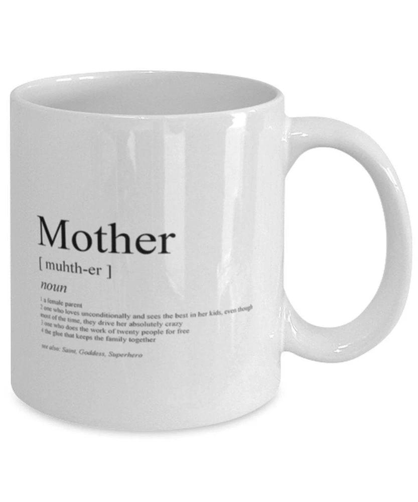 From Family Funny Coffee Mug Mother Definition Mug Mothers Day Gift Mom Product Details.. This high quality 11oz. ceramic white mug has a premium hard coat that provides crisp and vibrant color reproduction sure to last for years. Perfect for all hot & cold beverages. The highest quality printing possible is used. It will never fade no matter how many times you wash it. Material: 100% Ceramic. Print both sides. Dishwasher and Microwave Safe. High Gloss + Premium White Finish. Printed in the U.S.A. Personalized & Custom. We support personalized and custom mug to add custom, when placing an order, you can add notes to the "order note" in shipping address section. Also you can contact us directly via message. Shipping Info. Ready to ship in 1 to 2 business days, All products are made-to-order and proudly printed in the United States. Shipped by USPS and DHL, You will receive your order in 5-7 days. Replace & Refund. All products are defective during shipping broken, chipped will be replaced free of charge. You are not satisfied with the product, we will refund 100% money to you. If any other issues arise, please do not hesitate to message, we would be more than happy to assist you.