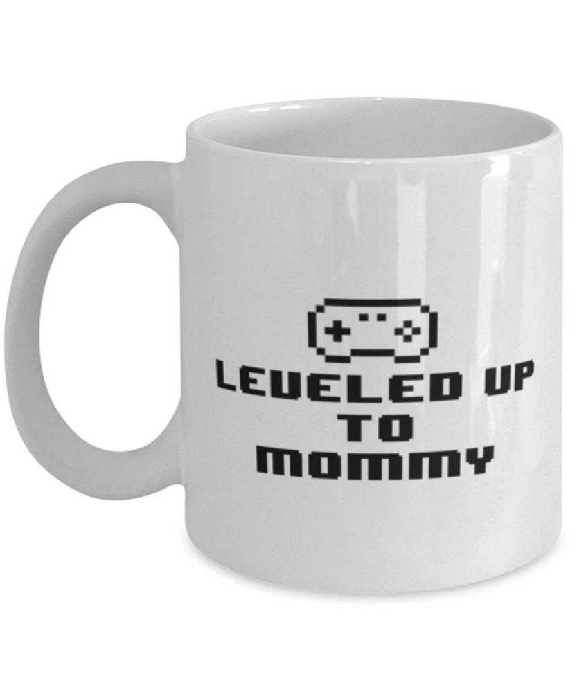 From Husband Funny Coffee Mug Leveled Up To Mommy New Mom Gift From Husband Gift Product Details.. This high quality 11oz. ceramic white mug has a premium hard coat that provides crisp and vibrant color reproduction sure to last for years. Perfect for all hot & cold beverages. The highest quality printing possible is used. It will never fade no matter how many times you wash it. Material: 100% Ceramic. Print both sides. Dishwasher and Microwave Safe. High Gloss + Premium White Finish. Printed in the U.S.A. Personalized & Custom. We support personalized and custom mug to add custom, when placing an order, you can add notes to the "order note" in shipping address section. Also you can contact us directly via message. Shipping Info. Ready to ship in 1 to 2 business days, All products are made-to-order and proudly printed in the United States. Shipped by USPS and DHL, You will receive your order in 5-7 days. Replace & Refund. All products are defective during shipping broken, chipped will be replaced free of charge. You are not satisfied with the product, we will refund 100% money to you. If any other issues arise, please do not hesitate to message, we would be more than happy to assist you.