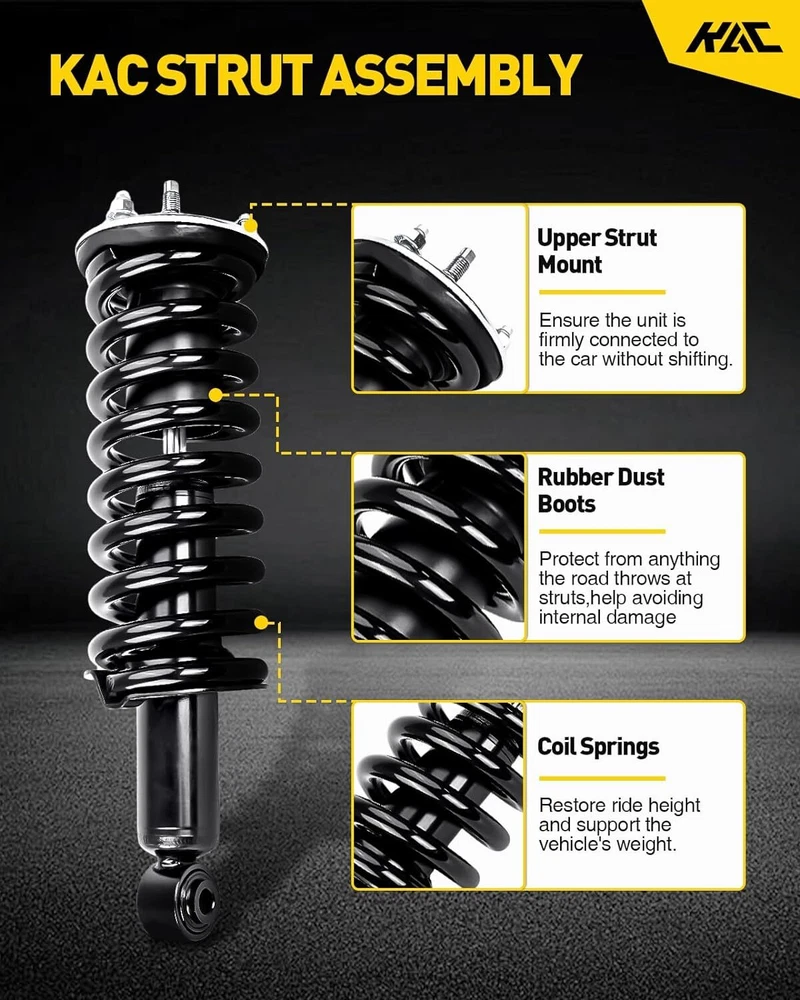 About this item Improve driving comfort: Shock absorbers can reduce the vibration and bumps of the vehicle during driving, so that passengers can feel a smoother driving experience. Increase safety: Shock absorbers can improve the stability and handling of the vehicle, reducing the risk of rollover and loss of control when the vehicle is driven at high speed or in an emergency. Extend vehicle life: Shock absorbers reduce wear and damage to vehicle components, extending the overall life of the vehicle and reducing maintenance costs. Improve fuel economy: shock absorbers can reduce the resistance of the vehicle during driving, improve fuel economy and reduce fuel costs. Customer Support : We are always developing and innovating, will continue to bring new auto parts. If this model is not suitable for your car, you can enter the our store, we have more models for you to choose! Feature: Enhanced Handing: Optimizes the response of the suspension system to road irregularities, absorbs road vibration, and maximizes the bumps and vibrations generated during driving to enhance the handing and control of the car on the road. Durable Material: Shock absorbers are made of high-quality steel and have been tested for impact wear and fatigue to provide structural integrity and durability, which can protect automobile spring parts and tires from mechanical damage caused by driving. OE Compliant: Each product is quality inspected and 100% tested, Installation is fast and direct: easy to install without special tools or skills. Enhanced Handing: Our strut assembly optimizes the response of the suspension system to road irregularities, absorbs road vibration, and maximizes the bumps and vibrations generated during driving to enhance the handing and control of the car on the road. Interchange Part Number : 171321*2 Fitment for: Make Model Year Ford Explorer 2002-2003 Mercury Mountaineer 2002-2003 Kit Includes: 2x Front Strut & Coil Spring Shock Assemblies-171321 Note: 1. The real product may differ from the pics due to the pics shown are genetic pics. 2. Shocks should always be replaced in pairs 3. Installation instruction is not included ,Professional installation is highly recommended. We are not responsible for any misuse or inappropriate installation. Time to replace your struts if you are troubled by bellow - The car makes unusual noises. - The car sink when the road is bad or load is heavy. - Oil Leakage. - Frequent and irregular tire wear. - It's hard to control the car. - Poor stability makes you feel very uncomfortable. How to Install : Step 1: Before You Lift the Vehicle, Loosen Lug Nuts One Full Turn. Step 2: Jack up Vehicle and Use Jack Stands for Safety & Remove the Tire from the Rotor. Step 3: (Wheel Alignment Is Necessary After Strut Replacement.) Marking the Position of All the Bolts Will Help Keep the Alignment Close to Original and save Time Aligning. Use a Colored Pencil to Mark the Old Strut on the Bolt. Step 4: Use Penetrating Oil (Such As Wd40) to Coat Any Rusted Fasteners, Let Soak for Approximately 1 Hour. Step 5: (Optional) While Waiting for Oil to Soak, Take This Time to Inspect All Other Components That May Need Replacement (Brake Pads, Rotors, Brake Hoses, Ball Joints, Cv Boots, Tie Rod Ends, Bushings, Sway Bars, Etc). Step 6: Remove Any Brake Line or Wire Attachments from the Strut Body. Do Not Disconnect Brake Lines (If Possible)! Opening Brake Lines Will Require Bleeding of the Brake System. Use Extreme Caution When Removing Brake Lines from Your Struts, As Any Damage to Your Brake Line Can Result in Expensive and Time Consuming Repairs. Step 7: Remove Sway bar Attached to the Strut Assembly or Control Arm. Step 8: Remove the Tie Rod (Only If It Attached to the Body of the Strut, If Not Leave It Attached to the Steering Knuckle). Step 9: Remove the Strut to Knuckle Bolts at the Bottom of the Strut. on some Vehicles, the Brake Caliper and Rotor May Need to Be Removed to Gain Access. Step 10: Remove the Upper Mounting Plate Bolts Located in the Engine or Trunk Compartment. Do Not Remove the Center Retaining Nut! It Is Not Safe to Unload the Spring from the Assembly in This Position. Step 11: Carefully Remove the Old Strut Assembly from the Vehicle. Be Very Cautious Not to Let the Strut "Drop" down on Your Brake Line, Rotor or Drum. Step 12: Install the New Complete Strut Assembly in the Reverse Order As Above (Steps 11-6). Using an Anti-seize Compound on All Fasteners Is Suggested. Step 13: Carefully Double Check Your Work and Make Sure Everything Is Tightened to Manufacturers Torque Specifications. Step 14: Replace the Tire the Rotor and Tighten to Manufacturers Torque Specifications. Step 15: Slowly Lower the Vehicle down After Removing the Jack Stands. Pay Very Close Attention to Any Odd Sounds When the Vehicle Is Lowered Onto the New Complete Strut Assemblies. Step 16: It Is Very Important That You Immediately "Road Test" Your Vehicle Right Away to Ensure That Installation Was Done Properly. Listen and Feel for Common Signs of Incorrect Installation While Driving Slowly over Speed Bumps, Rough Road or Potholes. Easy to Install Fully-assembled unit includes everything you need for strut replacement. No need for coil spring compressor and special tools. Superb Stability Each coil spring is specially designed to restore the ride height and support the weight of the vehicle, reducing body shaking and improve the handling performance. High Performance Detroit Axle parts are OE manufactured to meet expectations for fit, form, and function, offering high quality and great value.
