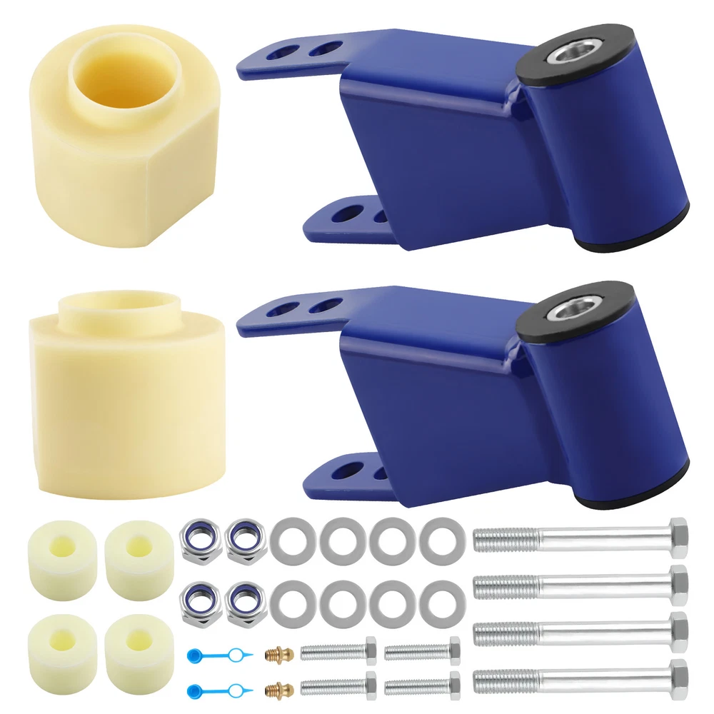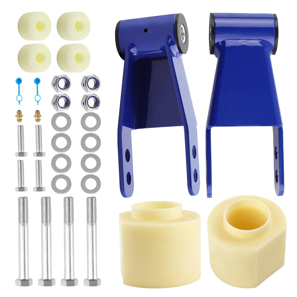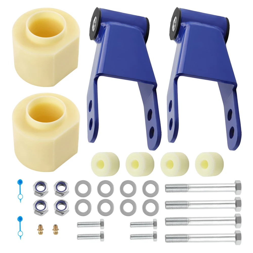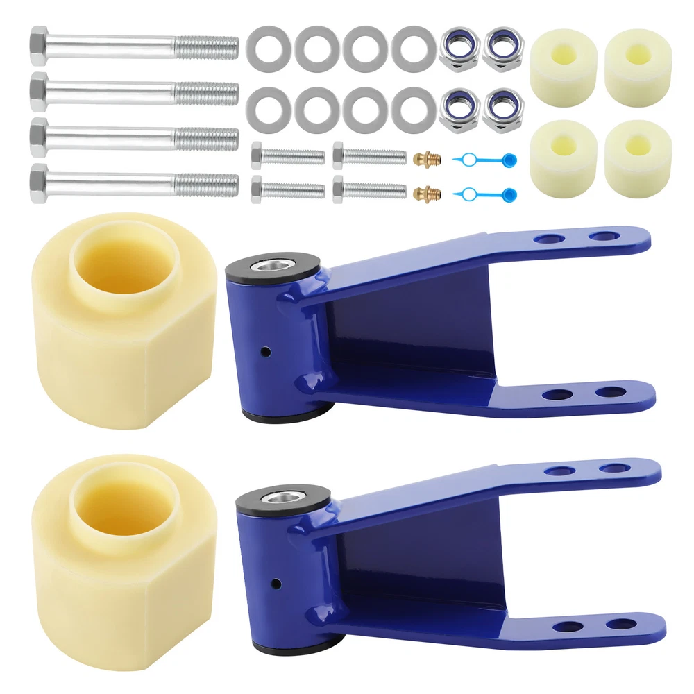 Description: • Can run tires that are 2" above the factory size • front lift thermoplastic and is designed to mount above your bottom spring perch. • This material is designed to withstand all harsh conditions and still provide enough rebound for factory ride quality. • Repositioning the transfer case will help maintain proper driveshaft alignment, prevent driveline wear and eliminate unwanted vibrations increasing ride security. • An alignment is always recommended if you are altering the height of your vehicle. Application: for Jeep Cherokee XJ 2WD/4WD 1984 - 2001 Does NOT fit Cherokee XJ vehicles with welded bump stops. Specification: Lift Height: 3'' front, 2'' rear Material:Steel Place on Vehicle: Left, Right, Front, Rear Package Size:32*22*14 Item Weight:4.7kg Dimension: This kit will allow you to run up to a 30" tire Time Frame: Installs In Approximately 2 - 4 Hours Installation: Perfect for DIY using basic hand tools, no Cutting or Welding required Package Includes: 2x Rear Shackle bracket 2x Fron Lifting pad 4x Transfer Case Drop Spacers 4x Hexagon head bolts M14*2*110 4x Hexagon head bolts M10*1.5*40 Features : *Not only to lift your truck but to improve your ride quality and comfort as well as lifetime use. *Enhance the look of your vehicle and run larger tires *Improves the look of your vehicle and increases ground clearance, allowing you to fit larger custom rims and tires. *Lifts your Car while maintaining factory ride quality *No special tools are required to mount these bolt spacers NOTE: The ratio between lift height and kit thickness is not 1:1, because of suspension geometry. MXR04FXJT