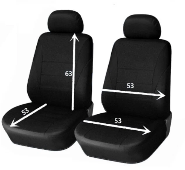A LOVELY SET OF QUALITY BLACK QUALITY DOUBLE LAYER BREATHABLE FABRIC FRONT SEAT COVERS NEW. SET INCLUDE 2 SINGLE FRONT SEAT COVERS & 2 HEADREST COVERS Produced from high quality heavy duty soft to feel peach effect stretch two ply fabric which gives the the cover a soft fit as well comes with a thermal backing for added comfort. The seat covers are tailored to allow full use of seat belts, headrest and driver armrest. Machine washable at 40 degrees GREAT FOR LONG DISTANCE DRIVERS! PLEASE DO NOT COMPARE OUR SEAT COVERS TO SIMILAR PAPER THIN CHEAP MODELS ON THE MARKET. OURS ARE CONSIDERABLY THICKER. Our covers do not move or slide as we use locking clips to secure the covers ,depending on the model. You will not sweat or slip/slide on these seat covers unlike the nylon seat covers available elsewhere WHAT ARE THEY FOR? These covers are intended to protect your original upholstery from dirt and wear. Even regular cleaning cannot stop everyday wear and tear. By investing in these high quality protectors you will give your vehicle great long term protection and increased resale value. Custom tailored seat covers are also an affordable way of renewing old / worn upholstery for a fraction of the price of replacement. We welcome any questions you may have on this item. Thanks for your interest!! ANY QUESTIONS PLEASE EMAIL US. GREAT GIFT! A LOVELY SET OF QUALITY BLACK QUALITY DOUBLE LAYER BREATHABLE FABRIC FRONT SEAT COVERS NEW. Produced from high quality heavy duty soft to feel peach effect stretch two ply fabric which gives the the cover a soft fit as well comes with a thermal backing for added comfort. Our covers do not move or slide as we use locking clips to secure the covers ,depending on the model. You will not sweat or slip/slide on these seat covers unlike the nylon seat covers available elsewhere These covers are intended to protect your original upholstery from dirt and wear. Even regular cleaning cannot stop everyday wear and tear. By investing in these high quality protectors you will give your vehicle great long term protection and increased resale value. Custom tailored seat covers are also an affordable way