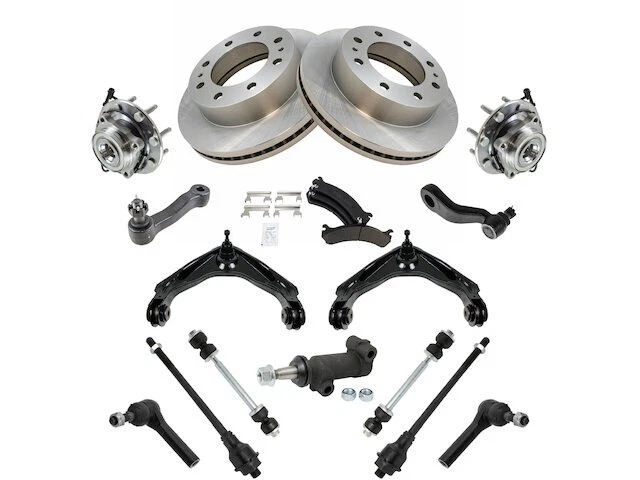 Front Brake Pad Rotor Wheel Hub Control Arm Kit fits 28QDHV Front Brake Pad Rotor Wheel Hub Control Arm Kit fits 28QDHV Position: Front Brand: TRQ Brake Pad Rotor Wheel Hub Control Arm Kit Condition: New Product Description Notes: 18 Piece Steering, Suspension, & Brake Kit -- 3 Groove Pitman Arm Features: Replacement Brake Kits Features & Benefits Product Specifications Quantity: 18 Piece Wheel Lug Count: 8 Lug Package Contents: (2) Front Sway Bar Links; (2) Front Outer Tie Rods; (2) Front Inner Tie Rods; (2) Front Lower Ball Joints; (2) Front Wheel Bearing & Hub Assemblies; (1) Pitman Arm; (1) Idler Arm; (2) Front Upper Control Arms with Ball Joints; (2) Front Brake Rotors; (1) Front Semi-Metallic Brake Pad Set with Contact Point Grease & Hardware; (1) Idler Arm Bracket Assembly Detailed Applications Years Vehicle Sub Model 2007 GMC Sierra 2500 HD Classic 4WD Warranty Coverage Policy 12 Month Warranty 30 Day Return Policy Return shipping paid by: Buyer Item must be returned within: 30 Days Refund will be given as: Money Back DO NOT SEND RETURNS BACK WITHOUT A VALID RMA NUMBER If you have an issue after receiving your part, please email us directly through eBay