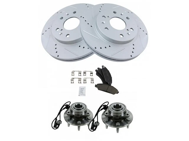 Front Brake Pad and Rotor and Wheel Hub Kit fits Chevy Avalanche 2007 4WD 22DHVJ Front Brake Pad and Rotor and Wheel Hub Kit fits Chevy Avalanche 2007 4WD 22DHVJ Position: Front Brand: TRQ Brake Pad and Rotor and Wheel Hub Kit Condition: New Product Description Notes: Ceramic Performance Brake Pad & Rotor Kit with Wheel Bearings Features: Ceramic Improved Stopping Power: Cross-drilled slotted to reduce brake fade Longer Lasting: True non-interference vane design for optimized cooling Positive Molded: Less dust resulting in cleaner wheels Multi-Layer Shim: Reduced noise and vibration Direct Replacement: No modifications necessary Product Specifications Coating: Premium G-Coated Grade Type: Performance Type: Performance Surface Type: Slotted X Drilled Package Contents: (2) Front Wheel Bearing & Hub Assemblies; (1) 12 oz DOT 3 & 4 Brake Fluid; (1) 13 oz Non-Chlorinated 50 State Formula Brake Cleaner; (1) Front Ceramic Brake Pad Set with Contact Point Grease & Hardware; (2) Front G-Coated Performance Brake Rotors Detailed Applications Years Vehicle Sub Model 2007 Chevrolet Avalanche 4WD Warranty Coverage Policy 12 Month Warranty 30 Day Return Policy Return shipping paid by: Buyer Item must be returned within: 30 Days Refund will be given as: Money Back DO NOT SEND RETURNS BACK WITHOUT A VALID RMA NUMBER If you have an issue after receiving your part, please email us directly through eBay