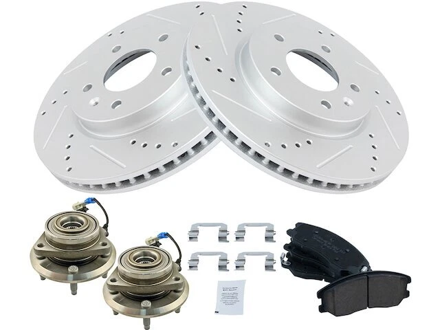 Front Brake Pad and Rotor and Wheel Hub Kit fits Chevy Equinox 2007-2009 89TTQB Front Brake Pad and Rotor and Wheel Hub Kit fits Chevy Equinox 2007-2009 89TTQB Position: Front Brand: TRQ Brake Pad and Rotor and Wheel Hub Kit Condition: New Product Description Notes: Ceramic Performance Brake Pad & Rotor Kit Features: Ceramic Improved Stopping Power: Cross-drilled slotted to reduce brake fade Longer Lasting: True non-interference vane design for optimized cooling Positive Molded: Less dust resulting in cleaner wheels Multi-Layer Shim: Reduced noise and vibration Direct Replacement: No modifications necessary Product Specifications Coating: Premium G-Coated Grade Type: Performance Type: Performance Surface Type: Slotted X Drilled Package Contents: (2) Front Wheel Bearing & Hub Assemblies; (1) Front Ceramic Brake Pad Set with Contact Point Grease & Hardware; (2) Front G-Coated Performance Brake Rotors Detailed Applications Years Vehicle 2007-2009 Chevrolet Equinox Warranty Coverage Policy 12 Month Warranty 30 Day Return Policy Return shipping paid by: Buyer Item must be returned within: 30 Days Refund will be given as: Money Back DO NOT SEND RETURNS BACK WITHOUT A VALID RMA NUMBER If you have an issue after receiving your part, please email us directly through eBay