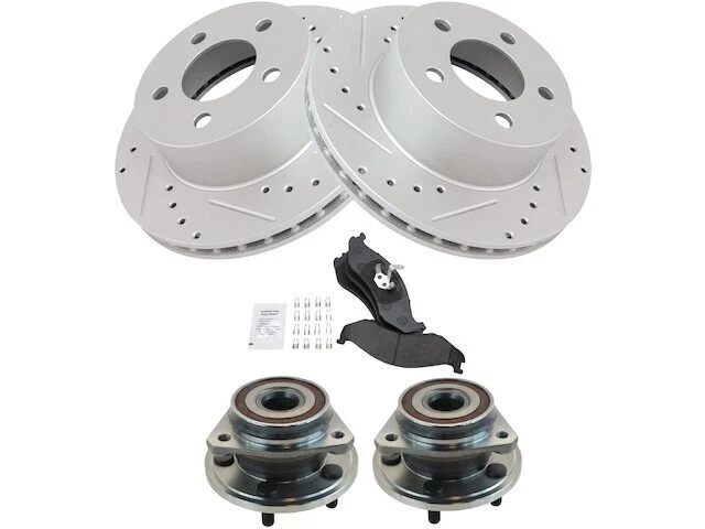 Front Brake Pad and Rotor and Wheel Hub Kit fits Grand Cherokee 1993-1998 23CKKQ Front Brake Pad and Rotor and Wheel Hub Kit fits Grand Cherokee 1993-1998 23CKKQ Position: Front Brand: TRQ Brake Pad and Rotor and Wheel Hub Kit Condition: New Product Description Notes: Brake Pad & Rotor Kit Features: Semi-Metallic Improved Stopping Power: Cross-drilled slotted to reduce brake fade Longer Lasting: True non-interference vane design for optimized cooling Positive Molded: Less dust resulting in cleaner wheels Multi-Layer Shim: Reduced noise and vibration Direct Replacement: No modifications necessary Product Specifications Coating: Premium G-Coated Type: Performance Package Contents: (2) Front Wheel Bearing & Hub Assemblies; (1) Front Semi-Metallic Brake Pad Set with Contact Point Grease & Hardware; (2) Front G-Coated Performance Brake Rotors Detailed Applications Years Vehicle 1993-1998 Jeep Grand Cherokee Warranty Coverage Policy 12 Month Warranty 30 Day Return Policy Return shipping paid by: Buyer Item must be returned within: 30 Days Refund will be given as: Money Back DO NOT SEND RETURNS BACK WITHOUT A VALID RMA NUMBER If you have an issue after receiving your part, please email us directly through eBay