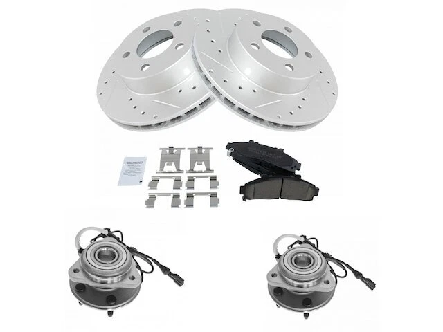 Front Brake Pad and Rotor and Wheel Hub Kit fits Mountaineer 1998-2001 81PRVB Front Brake Pad and Rotor and Wheel Hub Kit fits Mountaineer 1998-2001 81PRVB Position: Front Brand: TRQ Brake Pad and Rotor and Wheel Hub Kit Condition: New Product Description Notes: Ceramic Performance Brake Pad & Rotor Kit with Wheel Bearings Features: Ceramic Improved Stopping Power: Cross-drilled slotted to reduce brake fade Longer Lasting: True non-interference vane design for optimized cooling Positive Molded: Less dust resulting in cleaner wheels Multi-Layer Shim: Reduced noise and vibration Direct Replacement: No modifications necessary Product Specifications Coating: Premium G-Coated Grade Type: Performance Type: Performance Surface Type: Slotted X Drilled Package Contents: (2) Front Wheel Bearing & Hub Assemblies; (1) Front Ceramic Brake Pad Set with Contact Point Grease & Hardware; (2) Front G-Coated Performance Brake Rotors Detailed Applications Years Vehicle Sub Model 1998-2001 Mercury Mountaineer 4WD Warranty Coverage Policy 12 Month Warranty 30 Day Return Policy Return shipping paid by: Buyer Item must be returned within: 30 Days Refund will be given as: Money Back DO NOT SEND RETURNS BACK WITHOUT A VALID RMA NUMBER If you have an issue after receiving your part, please email us directly through eBay