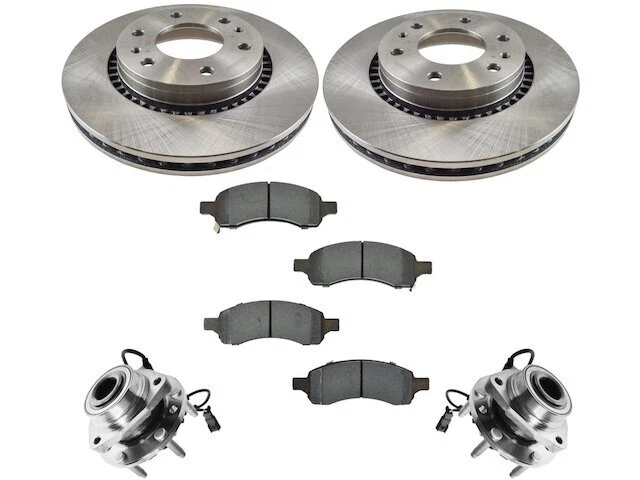 Front Brake Pad and Rotor and Wheel Hub Kit fits Rainier 2006-2007 67PHTX Front Brake Pad and Rotor and Wheel Hub Kit fits Rainier 2006-2007 67PHTX Position: Front Brand: TRQ Brake Pad and Rotor and Wheel Hub Kit Condition: New Product Description Notes: Ceramic Brake Pad & Rotor Kit with Wheel Bearings -- without Sport Package Features: Ceramic Positive Molded: Less dust resulting in clean wheels G3000 Casting Alloy: Reduced noise and improved wear resistance Application Specific Design: Extended service life, no modifications Product Specifications Wheel Lug Count: 6 Lug Package Contents: (2) Front Wheel Bearing & Hub Assemblies; (2) Front Brake Rotors; (1) Front Ceramic Brake Pad Set with Contact Point Grease & Hardware Detailed Applications Years Vehicle Engine 2006-2007 Buick Rainier 4.2L 6 Cyl Warranty Coverage Policy 12 Month Warranty 30 Day Return Policy Return shipping paid by: Buyer Item must be returned within: 30 Days Refund will be given as: Money Back DO NOT SEND RETURNS BACK WITHOUT A VALID RMA NUMBER If you have an issue after receiving your part, please email us directly through eBay