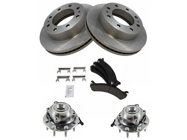 Front Brake Pad and Rotor and Wheel Hub Kit fits Silverado 3500 Classic 55GSHR Front Brake Pad and Rotor and Wheel Hub Kit fits Silverado 3500 Classic 55GSHR Position: Front Brand: TRQ Brake Pad and Rotor and Wheel Hub Kit Condition: New Product Description Notes: Ceramic Brake Pad & Rotor Kit with Wheel Bearings -- with 12000 lb. GVW; with Dual Rear Wheels (DRW) Features: Ceramic Positive Molded: Less dust resulting in clean wheels G3000 Casting Alloy: Reduced noise and improved wear resistance Application Specific Design: Extended service life, no modifications Product Specifications Wheel Lug Count: 8 Lug Package Contents: (2) Front Wheel Bearing & Hub Assemblies; (2) Front Brake Rotors; (1) 12 oz DOT 3 & 4 Brake Fluid; (1) 13 oz Non-Chlorinated 50 State Formula Brake Cleaner; (1) Front Ceramic Brake Pad Set with Contact Point Grease & Hardware Detailed Applications Years Vehicle Sub Model 2007 Chevrolet Silverado 3500 Classic 4WD Warranty Coverage Policy 12 Month Warranty 30 Day Return Policy Return shipping paid by: Buyer Item must be returned within: 30 Days Refund will be given as: Money Back DO NOT SEND RETURNS BACK WITHOUT A VALID RMA NUMBER If you have an issue after receiving your part, please email us directly through eBay