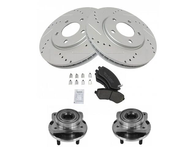 Front Brake Pad and Rotor and Wheel Hub Kit fits Voyager 2001-2003 41XQJP Front Brake Pad and Rotor and Wheel Hub Kit fits Voyager 2001-2003 41XQJP Position: Front Brand: TRQ Brake Pad and Rotor and Wheel Hub Kit Condition: New Product Description Notes: Ceramic Performance Brake Pad & Rotor Kit Features: Ceramic Improved Stopping Power: Cross-drilled slotted to reduce brake fade Longer Lasting: True non-interference vane design for optimized cooling Positive Molded: Less dust resulting in cleaner wheels Multi-Layer Shim: Reduced noise and vibration Direct Replacement: No modifications necessary Product Specifications Coating: Premium G-Coated Grade Type: Performance Type: Performance Surface Type: Slotted X Drilled Package Contents: (2) Front Wheel Bearing & Hub Assemblies; (1) Front Ceramic Brake Pad Set with Contact Point Grease & Hardware; (2) Front G-Coated Performance Brake Rotors Detailed Applications Years Vehicle Brake 2003 Chrysler Voyager Rear: Drum 4-Wheel ABS 2001-2002 Chrysler Voyager Rear: Drum Warranty Coverage Policy 12 Month Warranty 30 Day Return Policy Return shipping paid by: Buyer Item must be returned within: 30 Days Refund will be given as: Money Back DO NOT SEND RETURNS BACK WITHOUT A VALID RMA NUMBER If you have an issue after receiving your part, please email us directly through eBay