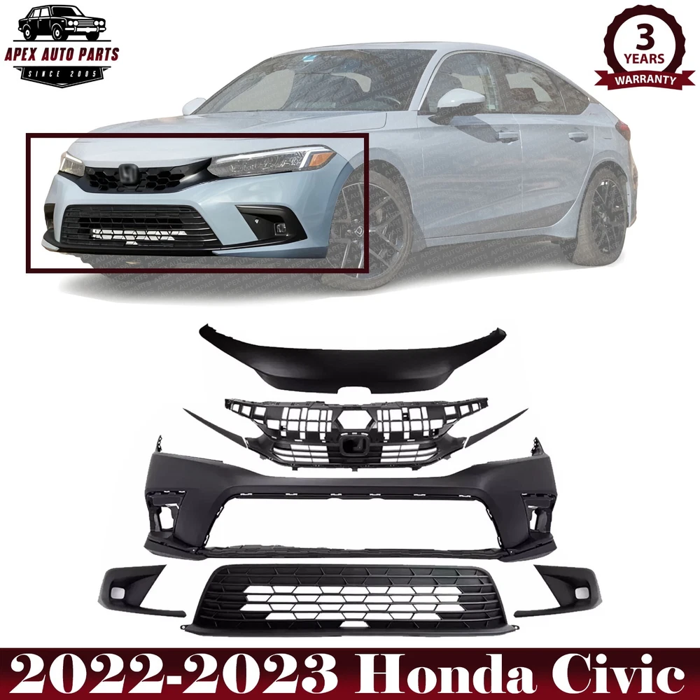 eBay Welcome to APEX AUTO PARTS Store Home About Us Feedback Add To Favorites New Arrivals Ending Soon Contact Us NEW Front Bumper Cover Paintable + Grille Assembly Upper + Bumper Upper Cover Molding + Bumper Lower Grille & Fog Light Trims Set of 2 For 2022-2023 Honda Civic Sedan Product Description WARNING : This product can expose you to chemical which is known to the State of California to cause cancer and birth defects or other reproductive harm. For more information go to www.P65Warnings.ca.gov. Specifics and Features : Quantity Sold : Set of 6 Product Fit : Direct Fit Recommended Use : OE Replacement Replaces OE Number : RPP172 Replaces Parts link Number : RPP172 Includes : 1 x Front Bumper Cover Paintable 1 x Front Grille Assembly Upper 1 x Front Bumper Upper Cover Molding 1 x Front Bumper Lower Grille 1 x Fog Light Trims LH 1 x Fog Light Trims RH Notes : Compatible with : 2022 Civic EX Sedan, Canada or Japan Built Vehicle 2022 Civic EX-L Hatchback 2022 Civic LX Hatchback 2022 Civic LX Sedan 2022 Civic Sport Hatchback 2022 Civic Sport Sedan 2022 Civic Sport Touring Hatchback 2022 Civic Touring Sedan 2023 Civic (submodel: EX, EX-L, LX, Si, Sport, Sport Touring, Touring) 2011-2013 Jetta (submodel: Comfortline, Sportline) 2011-2014 Jetta (submodel: Highline, S, SE, SEL, TDI, Trendline) 2012-2014 Jetta (submodel: GLI, TDI Premium) 2013-2014 Jetta (submodel: Hybrid, Hybrid Comfortline, Hybrid Highline, Hybrid SE, Hybrid SEL, Hybrid Trendline) 2014 Jetta (submodel: Comfort, Comfort TDI, Hybrid SEL Premium) Shipping Payment Returns Terms & Conditions Feedback Contact Us DOMESTIC LOWER 48 US STATES: FREE SALES TAX: CA ONLY VERY IMPORTANT: Double check shipping address. We are not responsible for incorrect or undeliverable addresses. Please use Shipping & Payments tab on top of page for shipping details for your location. Shipping to PR, HI, AK and PO Box addresses will be charged the same as shipping to Canada. GU, VI, SAIPAN will be charged the same as international shipping rate. For Canada shipping please select the lowest price. We do not offer expedited shipping. US Territories such as GU, VI, SAIPAN will be charged the same as CANADA shipping rate. Transaction will be held until a full shipping amount received. Some of the packages cannot be delivered to a PO Box. Customer is responsible to ensure PO Box address given is deliverable by the shipping company. Package will be held until a valid physical address is provided. Customer assumes shipping charges incurred in shipping to undeliverable address. International buyers are responsible for all customs duties, taxes, and other applicable fees incurred by the country's customs/border regulations. Please contact customs for more information. We ship 98% of all orders the same or next business day after payment received/cleared. Please understand that once orders are shipped, we cannot control the transit times thereafter. Most orders will ship via USPS First Class/Priority Mail or FedEx/UPS or the best suitable carrier for the specific size of the product. We are not responsible for any changes to address after item has been shipped. Item will be shipped out within 24-48 hours after payment cleared, except for weekends and holidays. PayPal e-check takes 3-7 business days to be processed. We will not ship until an e-check has been cleared. We do not accept returns. However, if there is an issue with your package, please contact us within 5 days of delivery. If we are not contacted within this period, we will be unable to process any claims. For emissions related items, please check with your local jurisdiction for emission specific requirements before purchasing. All items do not come with installation instruction unless otherwise specified. If item is questionable, please consult your local professional/mechanic before making purchase. Shipping DOMESTIC LOWER 48 US STATES: FREE SALES TAX: CA ONLY VERY IMPORTANT: Double check shipping address. We are not responsible for incorrect or undeliverable addresses. Please use Shipping & Payments tab on top of page for shipping details for your location. Shipping to PR, HI, AK and PO Box addresses will be charged the same as shipping to Canada. GU, VI, SAIPAN will be charged the same as international shipping rate. For Canada shipping please select the lowest price. We do not offer expedited shipping. US Territories such as GU, VI, SAIPAN will be charged the same as CANADA shipping rate. Transaction will be held until a full shipping amount received. Some of the packages cannot be delivered to a PO Box. Customer is responsible to ensure PO Box address given is deliverable by the shipping company. Package will be held until a valid physical address is provided. Customer assumes shipping charges incurred in shipping to undeliverable address. International buyers are responsible for all customs duties, taxes, and other applicable fees incurred by the country's customs/border regulations. Please contact customs for more information. We ship 98% of all orders the same or next business day after payment received/cleared. Please understand that once orders are shipped, we cannot control the transit times thereafter. Most orders will ship via USPS First Class/Priority Mail or FedEx/UPS or the best suitable carrier for the specific size of the product. We are not responsible for any changes to address after item has been shipped. Payment Item will be shipped out within 24 hours after payment cleared, except for weekends and holidays. PayPal e-check takes 3-7 business days to be processed. We will not ship until an e-check has been cleared. Returns 30 Days money back, please notify us within 30 days after you've received your purchased item. All return requests must be submitted through your eBay account. You have to obtain a RMA (Return Merchandise Authorization) number from us, and have the RMA number written on the return package. Buyers pay for return shipping fee. Items to be returned must be in res