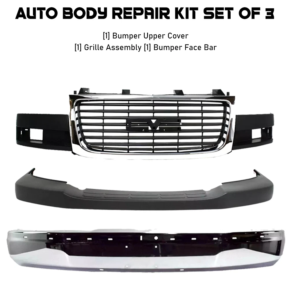 Attachment Type: Easy Installation Brand: Unbranded Items Included: Auto Body Repair Kit Set of 3 Placement on Vehicle: Front, Left, Right, Upper, Top Type: Bumper Kit Material: Chrome, Plastic, Steel Manufacturer Part Number: 13409452 Superseded Part Number: 2003-2023 GMC Savana front bumper and grille chrome kit, GMC Savana 1500 chrome grille and bumper replacement, 2003-2023 GMC Savana 2500 chrome front bumper and grille, GMC Savana 3500 chrome bumper and grille upgrade kit, GMC Savana 4500 chrome grille and front bumper combo, Chrome front bumper and grille for GMC Savana 2003-2023, OEM chrome grille and bumper kit for GMC Savana 1500, Aftermarket chrome bumper and grille assembly for GMC Savana, GMC Savana front chrome bumper and grille replacement 2003-2023, 2003-2023 GMC Savana chrome bumper and grille set Features: Durable, New / Aftermarket Fitment Type: Direct Replacement Finish: Primed, Textured, Chrome Vintage Part: No Manufacturer Warranty: 2 Years UPC: 723650553589 Country/Region of Manufacture: Taiwan gtin13: 723650553589 OE/OEM Part Number: AF628 Location: USA Interchange Part Number: 2023 2022 2021 2020 2019 2018 2017 2016 2015 2014 2013 2012 2011, 2010 2009 2008 2007 2006 2005 2004 2003, GMC, Savana 1500 2500 3500 4500, Front, Extended Cargo Van Standard Cargo Van, Standard Passenger Van Cutaway Van Extended Passenger Van, 4Cyl 6Cyl 8Cyl, 2.8L 4.3L 4.8L 5.3L 6.0L 6.6L, Base LS LT SLE SL, Grille Assembly, Upper Cover Top Pad Filler Trim, Bumper Face Impact Bar, Brackets Brace Support Mounting Retainers LH & RH Side Color: Chrome & Black