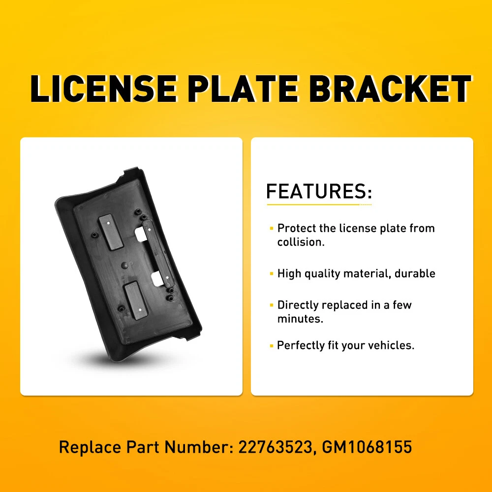 Fits for: 2014-2015 Chevrolet Silverado 1500 Specifications: OE: 22763523, GM1068155 Material: ABS Features: *High quality material Made of superior ABS material without rust,corrosion,stripping to ensure its high durability . *Direct replacement Direct replacement from stock application. Drillings and cuttings are not requried. *Perfect fit Manufactured according to originals for a perfect match with your car. *All tested before shipment All products were tested for performance and to ensure the accurate parameter for your vehicle. *Warm notice License Plate Bracket Front Bumper Tag Holder For 14-15 Chevrolet Silverado 1500 Fits for: 2014-2015 Chevrolet Silverado 1500 Specifications: OE: 22763523, GM1068155 Material: ABS Features: *High quality material Made of superior ABS material without rust,corrosion,stripping to ensure its high durability . *Direct replacement Direct replacement from stock application. Drillings and cuttings are not requried. *Perfect fit Manufactured according to originals for a perfect match with your car. *All tested before shipment All products were tested for performance and to ensure the accurate parameter for your vehicle. *Warm notice Please double-check the part number and models in the description to guarantee it fits your vehicle before ordering. Packaging include: License plate bracket*1 Item Specifics Brand AUXITO Performance Part Yes Brand AUXITO Type Front License Plate Mount Bracket Placement on Vehicle Front, Exterior Color Black Material ABS Manufacturer Part Number 22763523, GM1068155 OE/OEM Part Number 22763523, GM1068155 Universal Fitment No Features Durable, Easy Installation, No Drilling Required Attachment Type Screw-On Manufacturer Warranty 2 Years Fitment Type Direct Replacement Performance Part Yes Notes Without chrome trim Quantity 1 Finish Primed Payment We can accept payment by credit, debit, and gift cards; Apple Pay, Google Pay, PayPal, and PayPal Credit. Shipping 1. All items will be shipped in 24 hours after receiving your payment . 2. We ship this item to US only via USPS first class mail. It usually takes 3-5 working days to deliver. Returns 1. We offer 60 days return policy. 2. Please contact us within 60 days from the date you receive your package if you have any questions with the products . 3. Refund will be sent after we got your returned package. 4. All returned items should be in the original packaging with tracking number. Contact Us We work from Monday - Saturday 9:00AM - 6:00PM PST, but we will reply you once we get your message .There will be some delay on response if you send message or E-Mail on Sunday. DESCRIPTION PAYMENT SHIPPING RETURN POLICY CONTACT US Hot item Help & Info Payment Policy Shipping Policy Return Policy FAQ About Us License Plate Bracket Front Bumper Tag Holder For 14-15 Chevrolet Silverado 1500 Fits for: 2014-2015 Chevrolet Silverado 1500 Specifications: OE: 22763523, GM1068155 Material: ABS Features: *High quality material Made of superior ABS material without rust,corrosion,stripping to ensure its high durability . *Direct replacement Direct replacement from stock application. Drillings and cuttings are not requried. *Perfect fit Manufactured according to originals for a perfect match with your car. *All tested before shipment All products were tested for performance and to ensure the accurate parameter for your vehicle. *Warm notice Please double-check the part number and models in the description to guarantee it fits your vehicle before ordering. Packaging include: License plate bracket*1 Payment Shipping Returns Contact Us We can accept payment by credit, debit, and gift cards; Apple Pay, Google Pay, PayPal, and PayPal Credit. 1. All items will be shipped in 24 hours after receiving your payment . 2. We ship this item to US only via USPS first class mail. It usually takes 3-5 working days to deliver. 1. We offer 60 days return policy. 2. Please contact us within 60 days from the date you receive your package if you have any questions with the products . 3. Refund will be sent after we got your returned package. 4. All returned items should be in the original packaging with tracking number. We work from Monday - Saturday 9:00AM - 6:00PM PST, but we will reply you once we get your message .There will be some delay on response if you send message or E-Mail on Sunday. All rights reserved. On Feb 1, 2025 at 15:21:24 PST, seller added the following information: