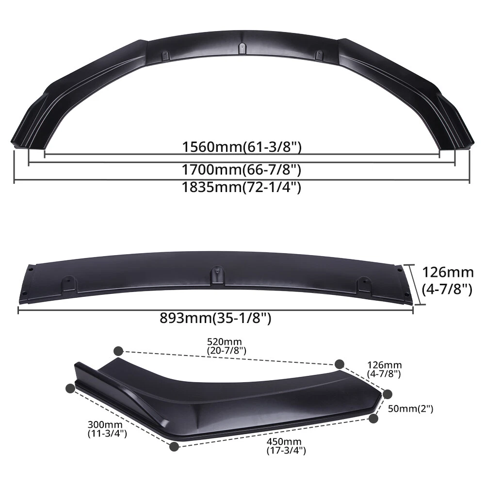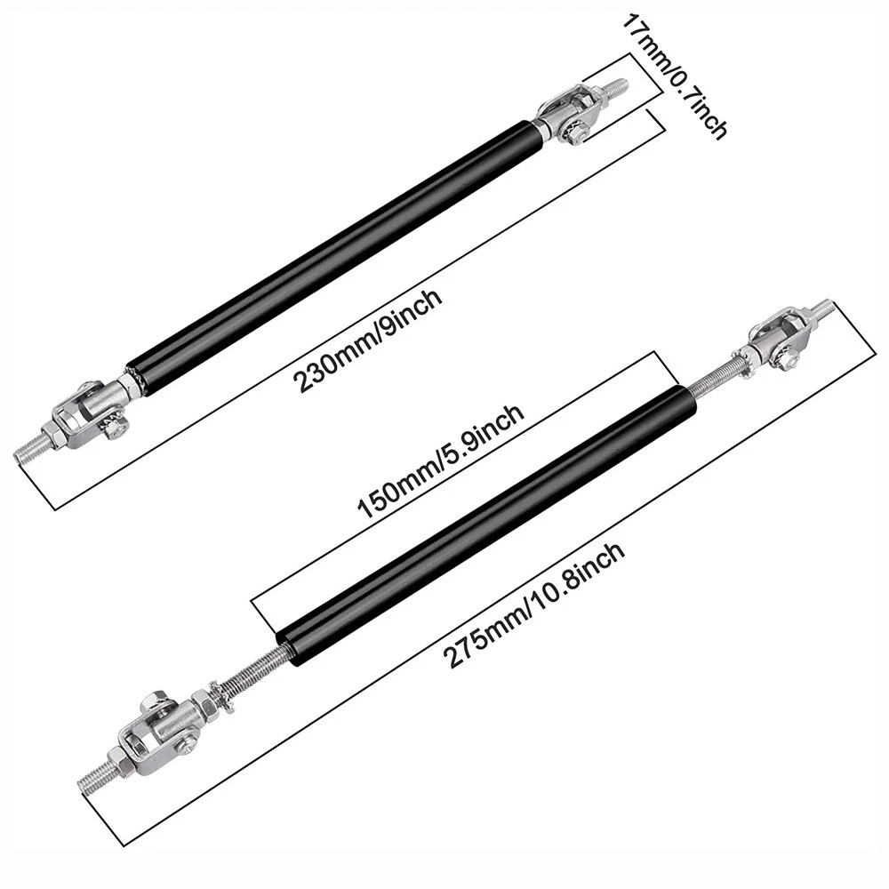 Production Description Package Included: 1 set Front Bumper Lip Body Kit Spoiler(Including Accessories) 2x Adjustable Strut Rods Specification: Front Bumper Lip -Type:Front Bumper Lip Body Kit Spoiler -Material:ABS -Color: Glossy Black -Placement on Vehicle:Front;Lower Strut Rods Color:Black Material: premium quality aluminum alloy Length: adjustable from 6" to 11" (150mm-275mm) Position: This exquisite and compact lever is mainly fixed on the body components (front and rear surround, skirt, head and tail lip), and can also be installed in the car center console or interior trim panel Note: Require drilling holes into the bumper lip diffuser to attach safely to the vehicle. Feature: -Direct Fit. -Easy install and durable use. -Great quality and great Fitment. -Correct Connector No cutting or splicing. -Strict quality control standards to Build and test. -Will Dramatically Improve The Sporty Appearance For Your Car. Instruction Not Included, Professional Installation Is Highly Recommended. On Jan 16, 2025 at 10:54:56 PST, seller added the following information: