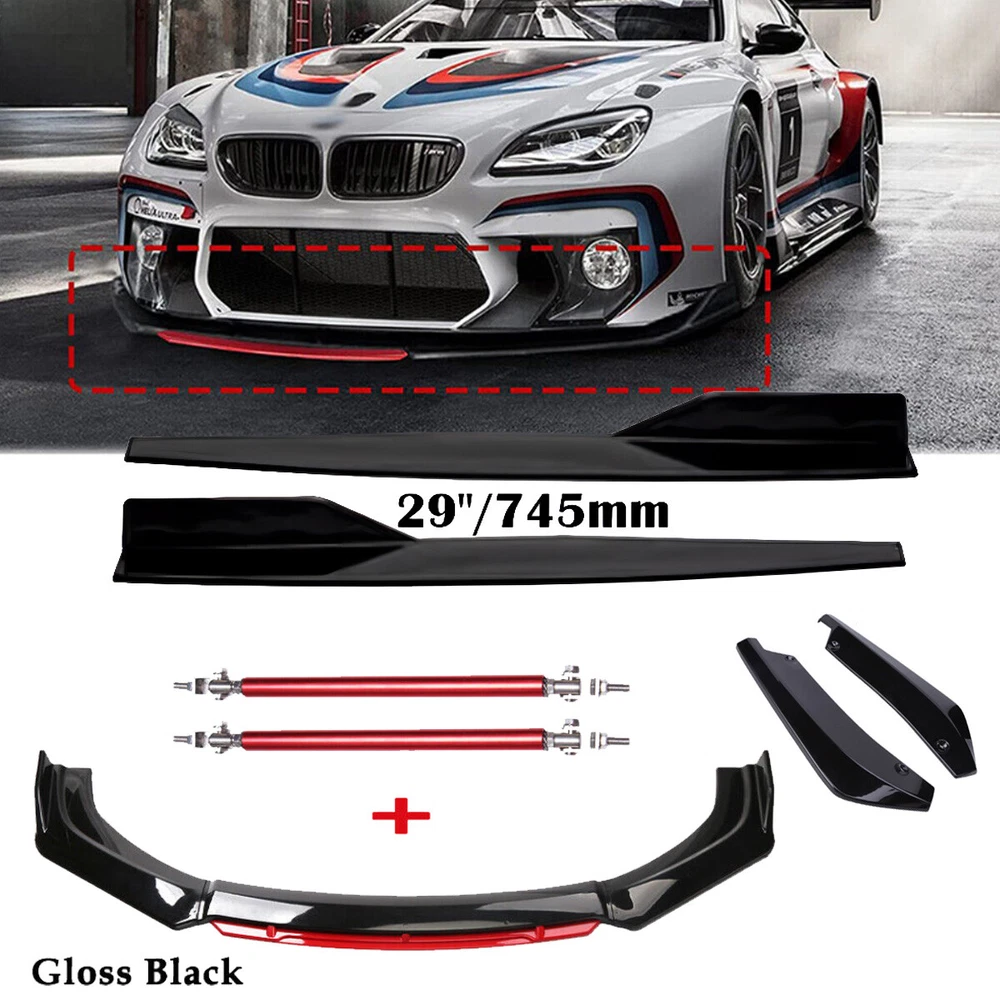 Package Included 1:Front Lip Chin Bumper Specification: Condition: 100% Brand New Type: Front Lip Chin Bumper Body Kits Material: ABS Color: Glossy Black Placement on Vehicle: Front ; Lower Features: Give your vehicles sporty appearance Protect Your Bumper From Scratching Strict quality control standards to Build and test. Come With Screws, Pre-drilled holes for quick installation Professional Installation Is Highly Recommended. Fit for Universal width 75". Package Included 2:Side Skirt ( 2pcs ) Specification: Condition: 100% Brand New and High Quality Type: Car Body Side Skirts Material: ABS Color: Glossy Black Side Skirt Size: 29 in x 1.77 in x 3.54 in Position: Side Skirt Extension Features: Universal modified side skirt for car sedan. While the side skirts don't affect the front ground clearance too much, it enhances the side extension of the in a very pure and exciting way. A Perfect Aftermarket Replacement. Professional Installation Is Highly Recommended. Package Included 3:Rear Lip ( 2pcs ) Specification: Condition: 100% Brand New and High Quality Type: Car Body Rear Lip Material: ABS Color: Glossy Black Rear Lip Size:17.32 in x 4.33 in Placement on Vehicle: Left, Right Package Included 4: Strut Rods(2pcs) Product Description This listing features for one pair (2 pieces) of blue front bumper lip splitter rod strut tie bar. These front bumper lip support rods are used to reinforce your front splitter or rear diffuser. It is universal fit for any cars, SUVs, trucks. You can extend its length from 8 inches to 11 inches. Specification * One pair (2 pieces) front bumper lip splitter rod strut tie bar * Material: Made with premium quality aluminum alloy chrome finish * The length can be adjustable from 8" to 11" * These include fully articulated top and bottom joins which allow them to be installed at any angle * It will support your vehicle bumper lip splitter stronger with and awesome eye-catching look We have Black, Red, Silver and Blue color in stock. Pls contact us if you want other color Package Includes: 4pcs/set Front Lip Chin Bumper Body Kits 2x Side Skirts 2x Rear Lip 2 x Adjustable Strut Rods Screws kit