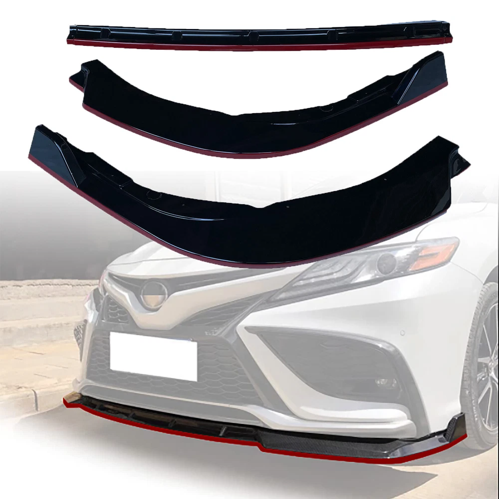 Description MOST IMPORTANT: Please do remember to email in advance if you want to return it back and tell us the reson. Pls choose NO LONGER NEED ITEM when you return it. (if there is a picture could be even better). Features: Give your car a more aggressive racing look. Easy installation, direct replacement. Accentuates your vehicle's overall look. Gives Better Aerodynamics for your vehicle Gloss Black with Red Trim Fitment: Fit For 2021+ Toyota Camry SE/ XSE/ LE/ XLE all models Package includes: 1x Front Bumper Lip (3PCS) Warranty This item is brand new and will come in original packaging. This product is being sold with a full manufacturer's warranty. Warranty Provides a Replacement Part in the even of Manufacturing defect for a period of 1 Year from the date of purchase. Please contact us for full warranty details, certain exclusions and restrictions may apply. Shipping All Orders ship at most within 1 business day of your order being placed. Please make every attempt possible to verify that part/product being purchased is correct for your application. In the event of shipping damage, improper fitment, or a desire to return the product, or any other questions related to a past or future order please feel free to contact us. About Us We combine attention to detail and a "Get The Job Done Right" attitude. Our high-quality control standards and premium OEM Specification manufacturing materials has created a new standard in the Replacement Parts Industry. More Items Store Contact Follow Us