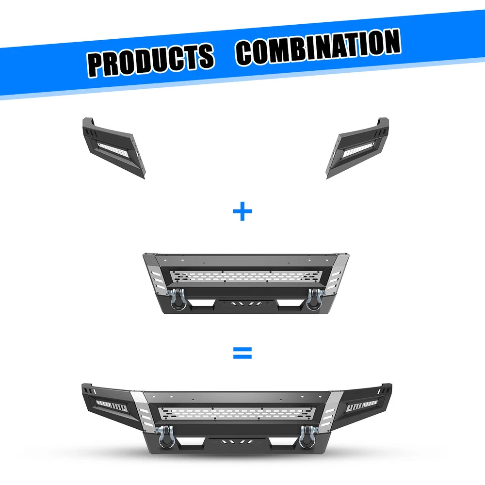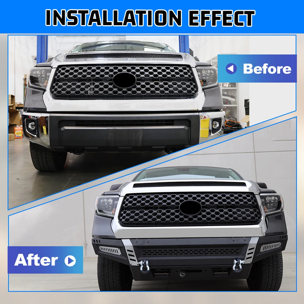 Front Bumper w/Lights+D-rings for 2014-2021 Toyota Tundra Off-Road Black Steel Fitments: For 2014-2021 Toyota Tundra Features: 【Perfect Fitment】The mid-width front bumper fits for 2014 - 2021 Toyota Tundra.The modular design of the front bumper makes installing the bumper on your car quicker and easier. 【Unique Design】The front bumper equipped with two D-rings,parking distance sensor mounting holes can work with the factory radar, (radar not included) heavy-duty D-ring shackle mounting bracket.Detachable decorative frame and honeycomb decorative net for DIY color spraying. 【Heavy Duty Steel & Long-lasting】The main body of the front bumper is made of heavy-duty high-strength steel. The front bumper also powder-coated with black textured finish and enhanced by pre-treatment to provide extreme resistance against wear. 【Easy Installation】Direct bolt-on upgrade replacement for your original stock front bumper reusing the factory mounting points. Requires no cutting, drilling or modification.The front bumper comes with mounting hardware kit. Specification: Color:Black Material: Steel Q235A Surface Finish: Black Anti Rust Powder Coated Fitment Type:Direct Replacement Placement on Vehicle: Front Mid-Width Front Bumper: 1.Allows DIY colour spraying 2.Shark Gill-like Decorative Panels 3.15-24 inches single row light bar can be installed (Not included) 4.Shackles are included 5.Product Dimensions:48.54 x 11.96 x 14.8 inch 6.Product Weight: 68 lbs Side Wings: 1.Retains OEM Parking Sensors (With dust plug when no sensors are installed) 2.Accept 3" or 4" Pod Light on Each Side (Includes a set of 4" Pod Lights ) 3.Product Dimensions: 25.43 x 10.63 x 8.89 inch 4.Product Weight: 24.25lbs Package included: 1 x Front Bumper 2 x Side Wings 2 x D-Rings Shackles 2 x 4" LED Pod Lights 1 x Set of All Mounting Hardwares Payment Delivery details Terms of sales About us Contact us Payment 👉 We accept PayPal (Recommended), credit card, VISA, Google Pay & Discover etc. 👉 Please submit your payment within 7 days after your purchase. 👉 If not, eBay will automatically open an Unpaid Item Dispute on our behalf if the item(s) are not paid within 7 days. Delivery details 👉 Please double check your delivery address and contact information. 👉 All items will be shipped within 1 business days after payment received. 👉 Tracking numbers will be easily accessible ASAP they are created and processed. Terms of sales 👉 Free 30 days Return, we will cover the return post fee. 👉 If a defective product was received, please do not hesitate to message us via eBay message. 👉 We will response in 24 hours in business to resolve the problem 👉 We stand behind our products. Items can be returned for exchange or full refund within 30 days from the date you receive. About us 👉 Wolfstorm has a huge warehouse and office located in the United States. 👉 All US domestic 48 states customers are able to benefit from the FREE SHIPPING services. 👉 Our experienced, professional customer service representatives offers prompt and courteous service. 👉 Best quality products, outstanding services and professional experience keep our customers. Contact us 👉 Please feel free to contact us if you have any problems. 👉 Emails will be replied within 24 hours in working days. 👉 After hours emails will be replied on the next business day. On Dec 3, 2024 at 01:25:42 PST, seller added the following information: