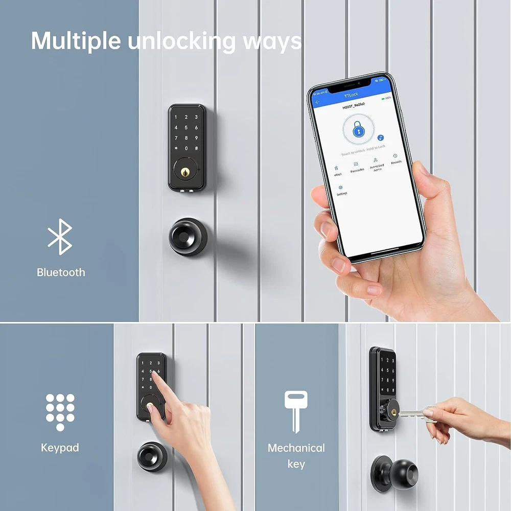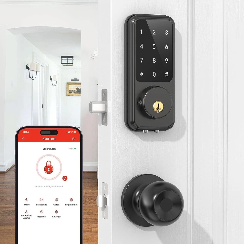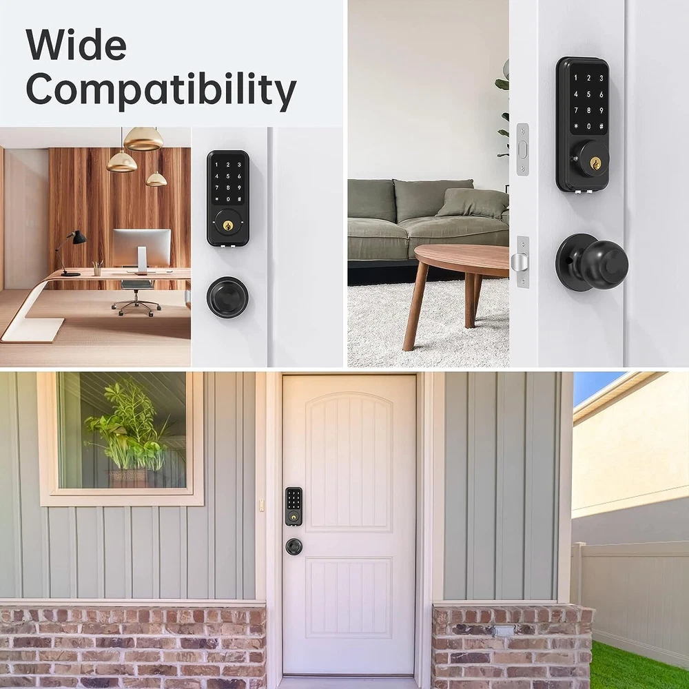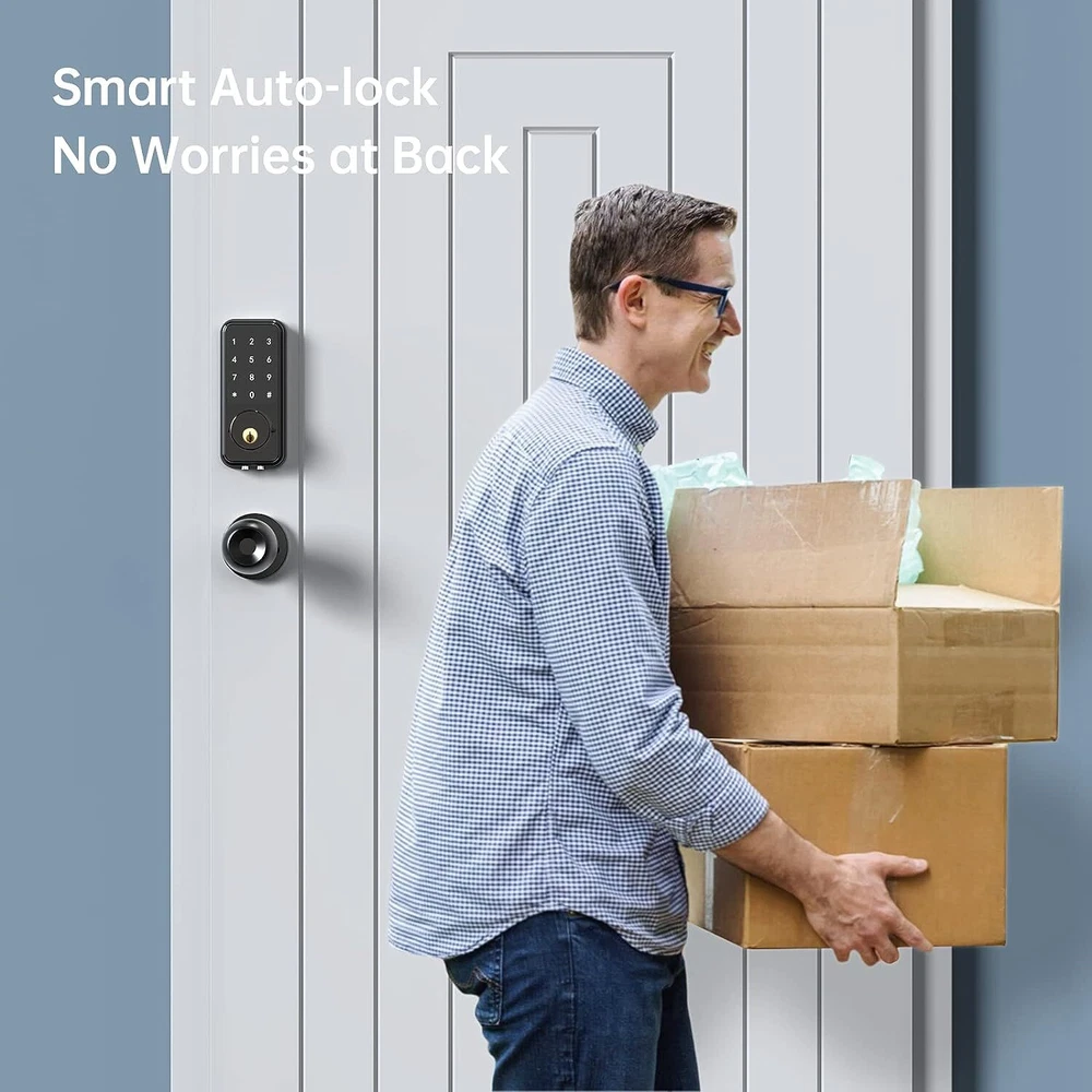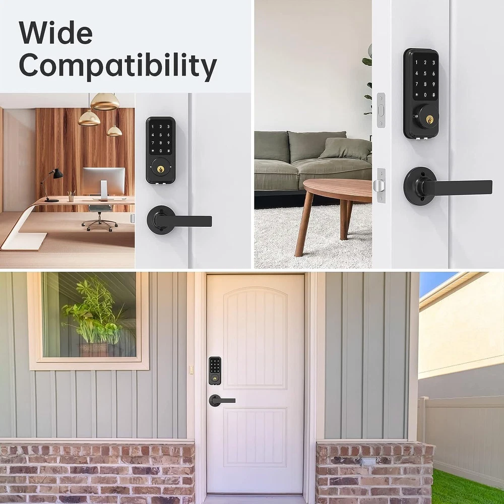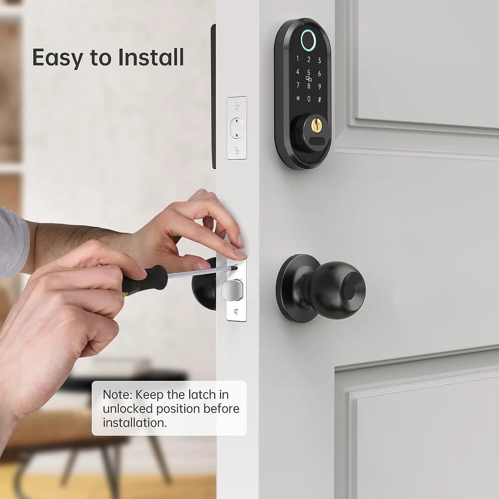 Options with "NO FP " means this model has NO fingerprint function, please kindly notice it About this item: 【 Keyless E ntry 】Front door handle set with 150 password code + 2 spare keys + 3 fobs + 250 fingerprints and bluetooth smartphone control, experience a revolutionary biometric technology with touch and go 360° fingerprint ID. Smart deadbolt supports working with Alexa & Google Home Assistant and remote controlling with your lock if paired with G2 Gateway (Optional, sold separately). 【 Automatic L ock 】With anti peeping function when entering passwords, set up auto lock function for the fingerprint door lock in 1-900 seconds, or long press '#' for manually locking. One-time password for temporary visitors, ekey or permanent code to your family, make it more flexible for children, guests, service people or others who wants to entry. 【 Keypad Door Lock with Hand le 】A digital deadbolt combined with 2 mating lever handles, built-in backlight. Solid alloy body and long battery life, 4pcs AA batteries providing 10,000 openings(approx. 12 months). Adding an equal touch of elegance to both traditional and modern homes, perfect for your smart home. 【 Easy to Ins tall 】Follow the steps and tips showing in the video, replace an existing deadbolt door lock in minutes with just a phillips screwdriver. Compatible with standard wooden, left and right handed doors, great solution for Airbnb rental apartment. Kindly noted that L/R side doors have different install method. 【 Professional Customer Su pport 】We provides at least 1 year warranty and free life-time technical support available to smart lock deadbolt. Any questions(such as installation or App problems or more information about G2 gateway) please feel free to reach out to us. Specifications: Brand: SMONET Model: A1 / M1 / Y1 Color: Black / Silver Material: Alloy Shape: Camelot / Rectangle / Oval Style: Modern Door Direction: Universal / Reversible (Both left & right, inswing & outswing) Connectivity Protocol: Bluetooth Ways to Unlock: Fingerprint / Keypad Passcode / Key Fobs / Physical Keys Control Method: App Phone APP: TT Lock / Next Lock (Totally FREE) Remotely / Voice Control: Alexa or Google Home (WiFi Gateway Needed) Lock Type: Keypad Finish: Painted Controller Type: Hand Control Control Method: Touch Power Supply: 4x AA Battery (NOT Included) IP Rating: IP63 What's in the box: 1x Front Door Lock Keypad 1x Rear Door Lock Panel 2x Knob or Lever Handle (Depends on your choice) 1x Latch 2x Key Fobs (IC Cards) 3x Physical Keys 1x Strike Pad 1x Strike Plate 1x Battery Cover 1x Drilling Template 1x Installation Screws Pack 1x User Manual Auto Lock Experience the convenience and peace of mind with smart deadbolt lock's automatic locking feature. Fingerprint Recognition Advanced fingerprint recognition technology enables the storage of up to 250 sets of fingerprints. Remote Share You have the ability to generate and share a one-time password remotely for guest. Easy to Install No extra drilling required. Can be completely installed by one person with just a Phillips screwdriver Voice Control Embrace the power of voice: Control your lock with effortless ease! (G2 Gateway Required) Widely compatibility to all kinds of weather SMONET Pro keyless entry door lock with handle provides IP63 waterproof and works from -4 °F to 158 °F temperatures. Smooth and stable in all kinds of weather, safeguard your home as always. Long battery life, Type C backup Intuitive touchscreen display, long battery life, up to 12 months of battery life. SMONET Pro front door lock with low battery alert and type C emergency backup, free you from battery worries.