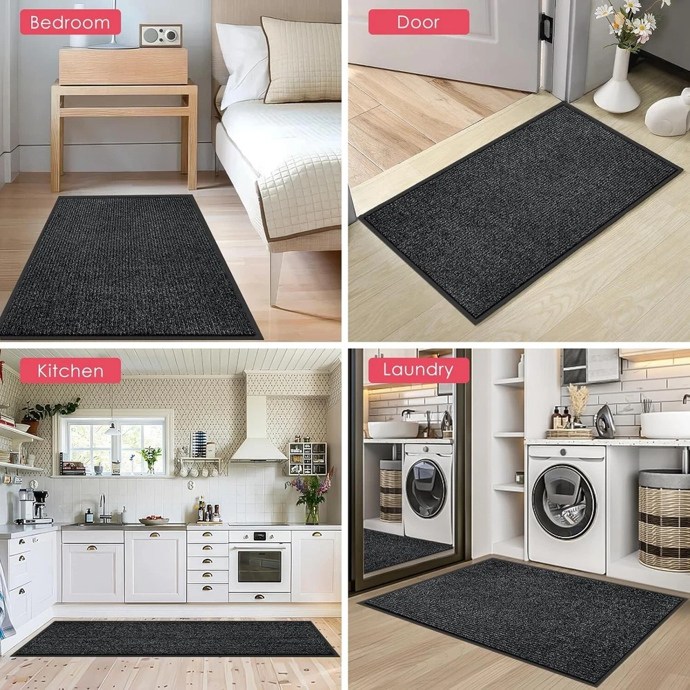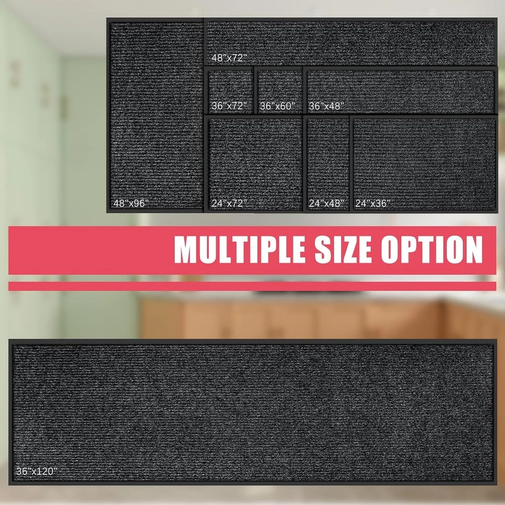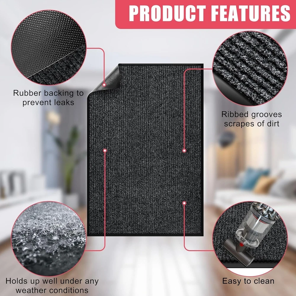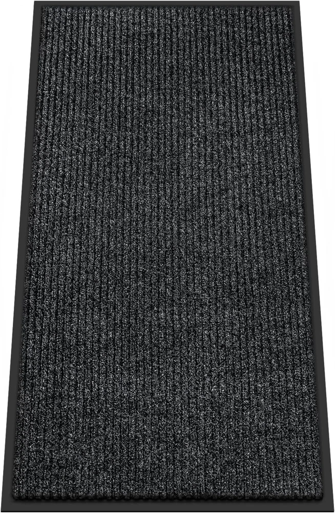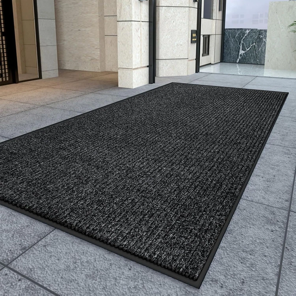 Front Door Mat, 3'x6' Indoor Outdoor Entrance Mat, Commercial Floor Mat Inside Outside Entrance, Heavy Duty Durable Welcome Mat, Rubber Backing Non Slip Outdoor Mats for Entryway,Dark Gray [STRONG NATURAL RUBBER BACKING] Our indoor/outdoor entrance door mats are made of durable, weather-resistant natural rubber to ensure long-lasting performance in any season. The sturdy construction can withstand high foot traffic without snagging or curling. , Ideal for busy areas such as doorways and porche. [EFFECTIVELY ABSORBS DUST AND MOISTURE] Say goodbye to the hassle of tracking dust and moisture into your home. Our front doormat features deep grooves that effectively trap dirt, mud, and moisture from shoes, keeping your floors clean and preventing potential damage. [SLIP-RESISTANT, STAIN & FADE RESISTANT] Our outdoor rug is equipped with a non-slip natural rubber backing that provides a secure grip and prevents slipping when entering or exiting. The surface is stain and fade resistant to ensure long-lasting use both indoors and outdoors . Resistant to all weather conditions including snow, rain, mud and sand. [EASY TO CLEAN ] The entryway rug is designed to be easy to clean quickly and efficiently with a vacuum cleaner or a traditional broom. In addition, tapping and shaking the back of the mat helps to remove any remaining debris. For a deeper clean, rinse with a garden hose and hang the doormat in a ventilated area or dry it in the dryer. This effortless maintenance routine will keep your welcome mat neat and organized. [VERSATILE SIZE OPTIONS] We offer a wide range of sizes for our outdoor door mat, including 24‘’*36‘’,24‘’*48‘’,,24‘’*72‘’,36" x 48",36" x 60",36" x 72",36" x 120",48" x 72",48" x 96". Whether you need a doormat for a small entryway or a large outdoor patio, we have the perfect size to fit different door entrances and spaces. Our heavy-duty oversized doormat is also suitable for commercial use, making it a versatile choice for various settings.