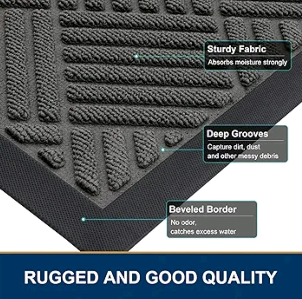 Front Door Mat – Heavy-Duty Rubber, Non-Slip, Traps Dirt & Moisture, 29.5x17