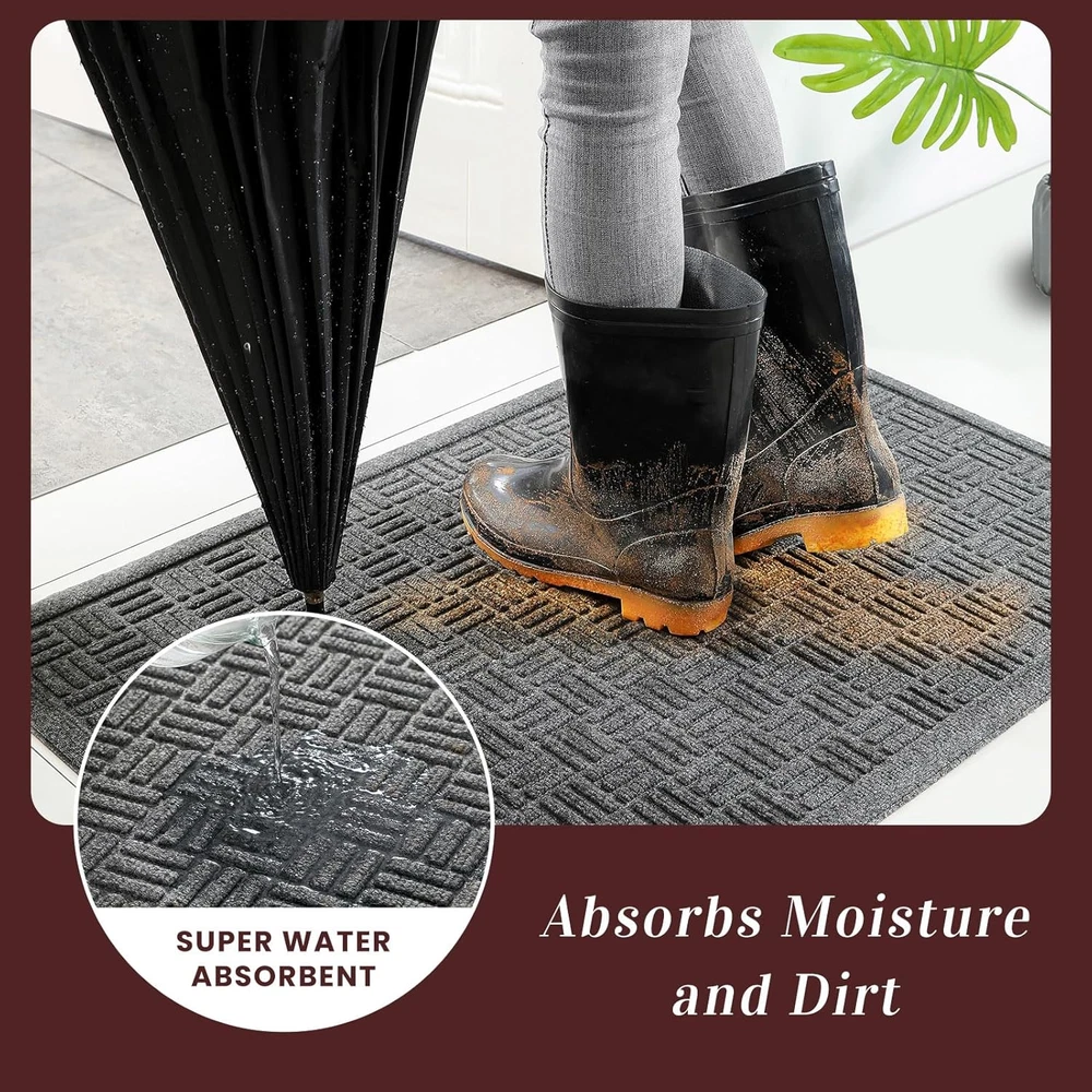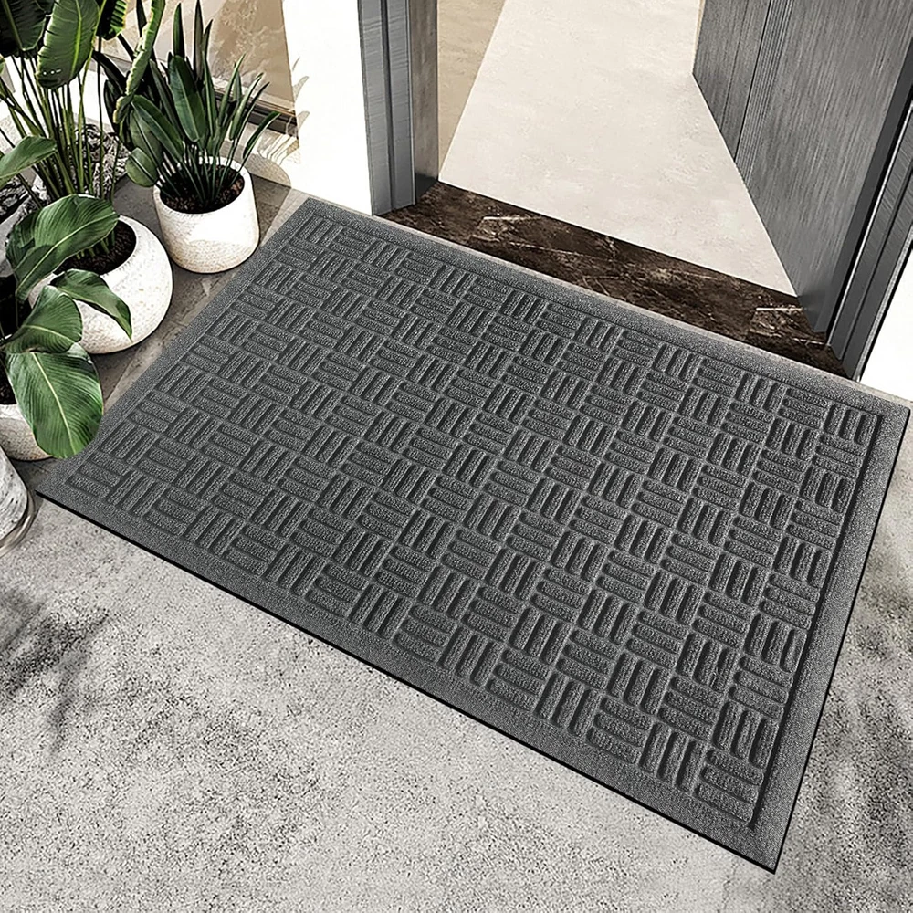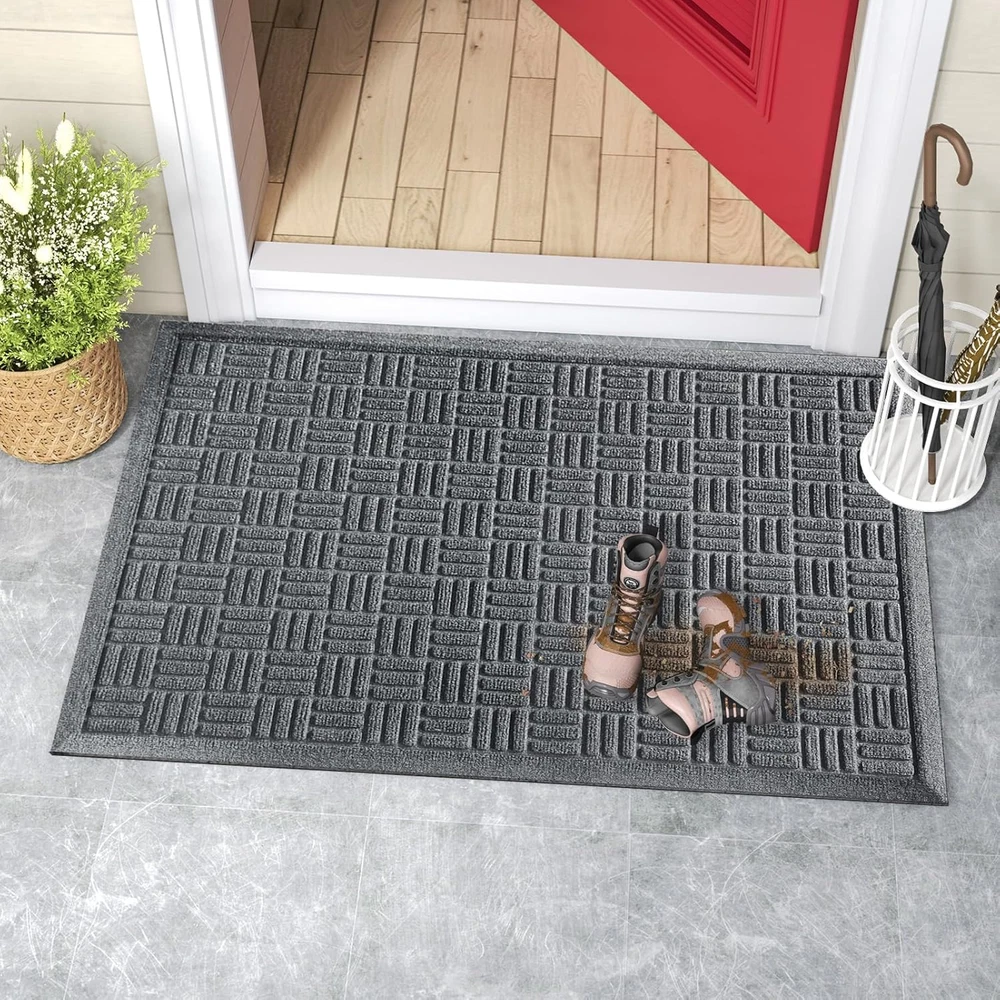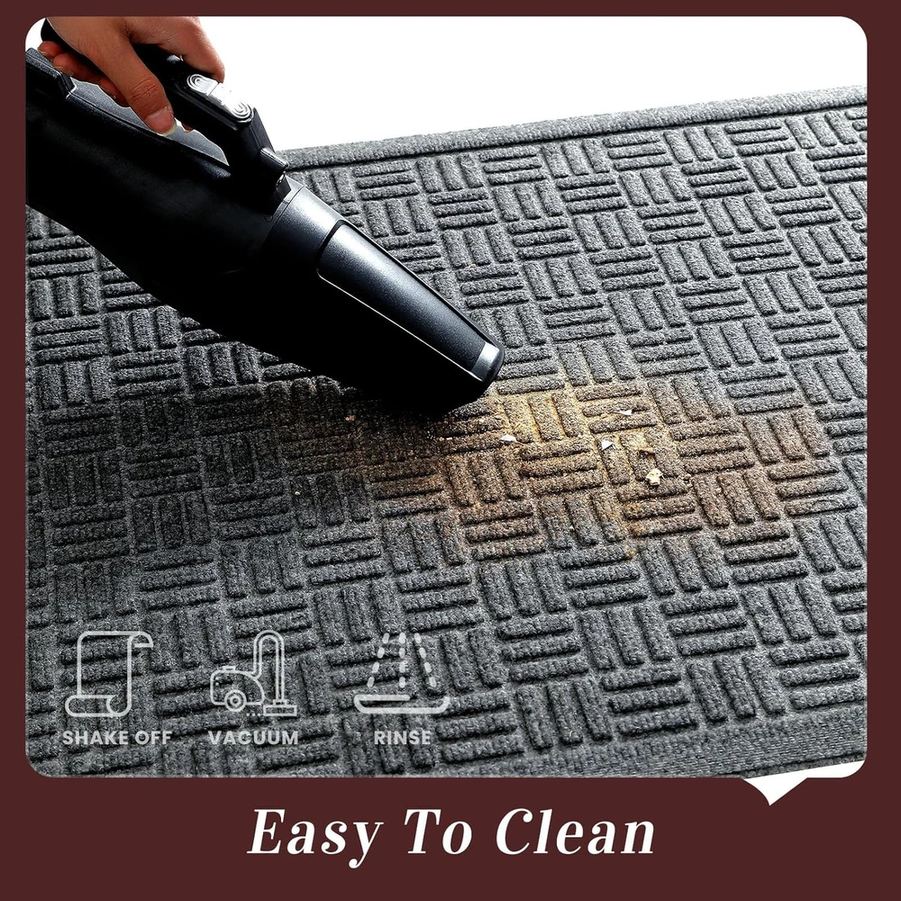 DIRT TRAPPER & DURABLE: Mibao doormat is made of high-quality absorbent polypropylene fabric, uses double layer technology which absorb moisture and dirt from shoes quickly, makes your floors clean and dry. The pattern is durable and hard to scatter. It can be used for several years. NON SLIP RUBBER BACKING: Mibao outdoor mats' natural rubber backing provides higher tensile strength and tear resistance, and less odor than synthetic rubber. Also make it anti slip on dry smooth floor, helps keep mat firmly in place, that it won't slip or slide, more safe and cozy. EASY TO CLEAN: The floor mat is designed for easy to clean. You just use vacuum to clean it or shake it off. For deep clean,you can rinse it with garden hose and let it dry. On the other hand, Mibao welcome mats' color are resistant to dirt. VERSATILE USE: Our doormats are used for all weather, from hot summer to cold winter, works as front door mat, outdoor door mat, welcome door mats, garage rugs and mats, indoor mats for entryway, shoe mat, dog doormat, floor mats, ect. It can scrap off mud, slush, grass or retain snow. IDEAL SIZE: 29.5" x 17", 36" x 24", 24"x48", 47" x 32", 61.5" x 36", 1/4 inch thick , low profile design so doors won't get stuck. Heavy duty extra large door mat entrance rug carpet widely used for outdoor indoor, exterior patio entry way, garage, garden, shopmall with high traffic inside and outside. Product Description 1 OUTDOOR 2 ENTRANCE 3 PATIO 4 STAIRS