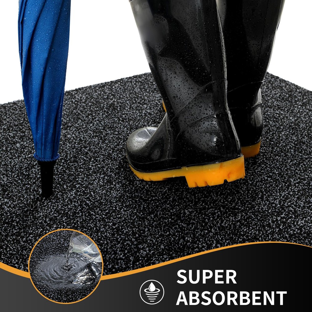 TRAP DIRT & MOISTURE : Indoor Doormat is made of high-quality absorbent polypropylene fabric, which absorb moisture and dirt from shoes quickly, makes your floors clean and dry, especially for the rainy, snowy, or muddy weather. SORF & DURABLE: The surface of this indoor mat is made of high-quality polyester which is durable, super absorbent, and comfortable to walk on. And the non-skid TPR rubber backing prevent you from slipping and also won't scuff floors, perfect for indoor use. Before placing, please make sure the floor is clean and dry. EASY TO CLEAN: The stain resistant polyester carpet surface removes dirt from shoes easily. When your doormat gets dirty, first shake it off outdoors or over your garbage bins, then sweep with the vacuum regularly. For deeper clean: machine wash separately in cold water, using mild detergent. Tumble dry, low heat. Do not use bleach or fabric softener. Our door mat will not fade or wear out and will remain like new even after repeated washing. LOW PROFILE: Low-profile design and reinforced overlock edges tend to have a firmer brushing action and allow the door to open easily over it without jamming or curling, ideal for low clearing doors or entryways. VERSATILE: Choose from 5 sizes in 17" x 29.5", 20" x 31.5", 24" x 35.5", 31.5" x 47", 35.5" x 59"as your need. This utility dust floor mats can be used as indoor doormat or as an exterior door mat for front door, back door, pet entry, indoor entrance, kitchen, laundry, bathroom or any areas with heavy traffic.