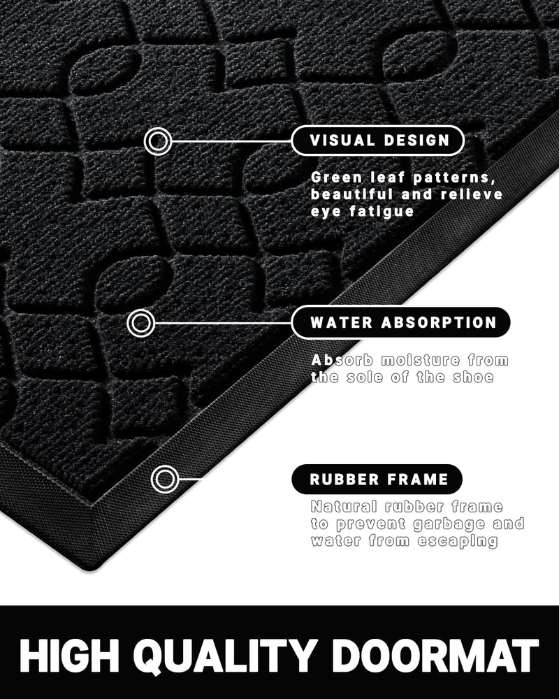 Store New Arrivals Add to Favorite View Feedback Contact Fast deliveries to the customer's home Quality customer service John Make the customers happy! Front Door Mat Outdoor Indoor, 29.5X17 All-Season Heavy Duty Door Mats outside Entrance, All-Weather Heavy Duty Outdoor Welcome Mat, Non Slip Porch Patio Entrance Mat, Black Description 【Capture Dirt and Moisture】: Yimobra front door mat adopts heart striped groove design, forming a detention dam extending in all directions, helping to capture dirt, dust, gravel, mud, sand, grass or other messy debris and prevent them from entering Indoor; The surface of floor mat beautifully woven polyester fabric absorbs moisture, and the sturdy oblique rubber edge will not accumulate water in rainy and snowy days, keeping your home dry and clean 【Non Slip Rubber Backing】: Yimobra door mat outside entrance, 0.20 inch ultra-thin design, can glide under most doors without jamming or curling. The indoor mat uses a high-quality non-slip rubber backing to help prevent you from slipping when entering or going out, keeping you safe. At the same time, the rubber backing can prevent water and mud from penetrating the floor, keeping door mat in place and not sliding or wear the floor and effectively protect your indoor floor 【Easy to Clean】: Yimobra welcome mat, Just use a vacuum cleaner, or sweep with a broom, or tap the backing and shake the doormat. For more in-depth cleaning, use a washing machine or garden hose to rinse the floor mat, then hang it in a ventilated place to air dry it or use a dryer 【Rugged and Sturdy 】: The surface of this Yimobra water resistant outdoor mat is made of high-quality polyester, unique Hot-melt Planting Production Process, which is designed to be sturdy, strong and flexible. The doormat in outside can withstand a variety of weather and seasonal changes, whether it is sunny, rainy or snowy 【Wide Use】: Yimobra door mat are stylish and practical, suitable for indoor use to keep the floors of homes, living spaces, lobbies and offices clean, or outdoor use in front doors, backdoor, sidewalks, terraces, proch, garages, barns, driveways and many others busy areas; Heavy and sturdy materials, soft and flexible; Simple and stylish design complements any decoration Product Description 1 STURDY FABRIC 2 LOW-PROFILE 3 EASY TO CLEAN 4 NON-SLIP BACK The video showcases the product in use. The video guides you through product setup. The video compares multiple products. The video shows the product being unpacked. MORE YIMOBRA HIGH-QUALITY DOOR MATS MAYBE YOU LIKE Add to Cart Add to Cart Add to Cart Add to Cart Add to Cart Add to Cart Customer Reviews 4.4 out of 5 stars 1,147 4.6 out of 5 stars 995 4.6 out of 5 stars 983 4.6 out of 5 stars 269 4.4 out of 5 stars 1,821 4.5 out of 5 stars 1,776 Price $11.99 $ 11 . 99 $12.99 $ 12 . 99 $13.99 $ 13 . 99 $16.99 $ 16 . 99 $11.99 $ 11 . 99 $9.99 $ 9 . 99 Material Polyester Polyester Polypropylene Artificial Grass Polyester Polypropylene Border Natural Rubber Natural Rubber Natural Rubber Natural Rubber Borderless Natural Rubber Pattern Flower Welcome Grass Hello Geometry Geometry Outdoor/Indoor ✔ ✔ ✔ ✔ ✔ ✔ Easy Clean ✔ ✔ ✔ ✔ ✔ ✔ Anti-slip ✔ ✔ ✔ ✔ ✔ ✔ Low Profile ✔ ✔ ✔ ✔ ✔ ✔ Multi-color choice ✔ ✔ ✔ ✔ ✔ ✔ Rectangular ✔ ✔ ✔ ✔ ✔ ✔ Style Modern Weave Type Machine Made Pattern Geometric Is Stain Resistant Yes Theme Entrance/Exit Doormat Number of Pieces 1 Room Type Home Office, Hallway Material Polypropylene Age Range (Description) Adult Rug Form Type Doormat Item Thickness 0.25 Inches Indoor/Outdoor Usage Outdoor, Indoor Item Weight 2.32 pounds Pile Height Low Pile Construction Type Machine Made Occasion All Weather, Housewarming, All Season, Household daily use Color Black Shape Rectangular Back Material Type Rubber Product Dimensions 29.5"L x 17"W Product Care Instructions Vacuum, Sweep, Shake off, Rinse Size 29.5"x17" (Small) ABOUT US We offer the best prices around on high quality products. Our E-store includes media such as books, movies, music and games while offering electronics, toys, sporting apparel, clothing, tools, general home, garden items and more. SHIPPING We are always working hard to ensure your package arrives as soon as possible. Please understand that some factors like weather, high postal traffic, and the performance of shipping companies are outside of our control. We offer free shipping to the lower 48 states and ship within 2 business days of payment, usually sooner. We do not accept P.O. Boxes. Please provide a physical address. For shipping outside of the continental USA, we only use eBay's Global Shipping Program. The item is shipped to KY and then sent to the rest of the world. International customers are responsible for all duties and taxes. Continue to 'check out' to calculate costs for shipping the item to your country. Messages regarding eBay's Global Shipping Program MUST be directed at eBay EXCLUSIVELY. RETURNS We offer a 30-Day Return Policy on items in which you are not completely satisfied with. You have the option of a full-refund or an exchange of the item. No returns are available on items shipped outside of the USA PAYMENT We accept PayPal. CONTACT US This page content is yet to come Please ad us to your favorite seller and visit again later Thank You CUSTOMER SATISFACTION We try our very best to make sure every customer is completely satisfied. If there's a problem, message us! We're happy to help. WE ACCEPT