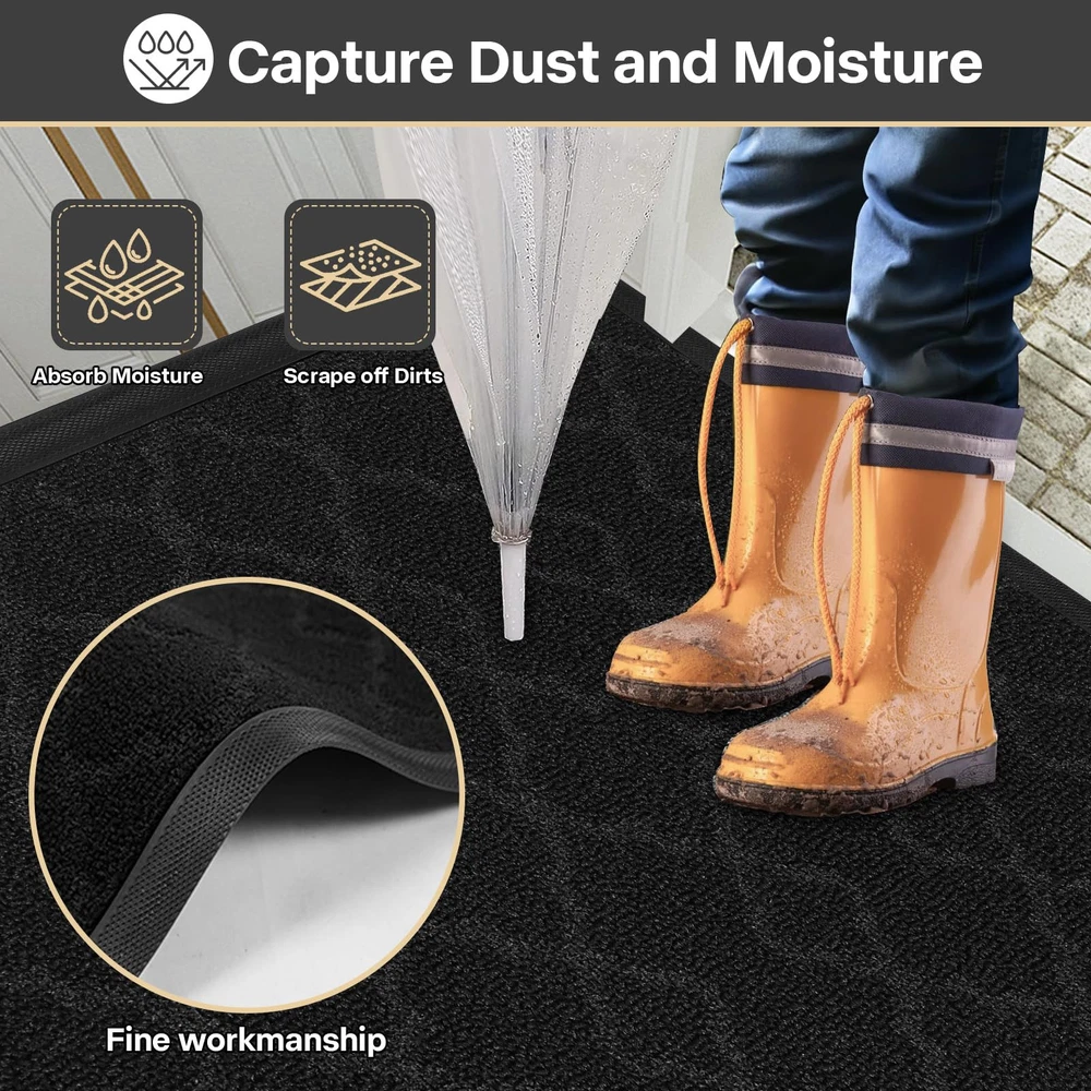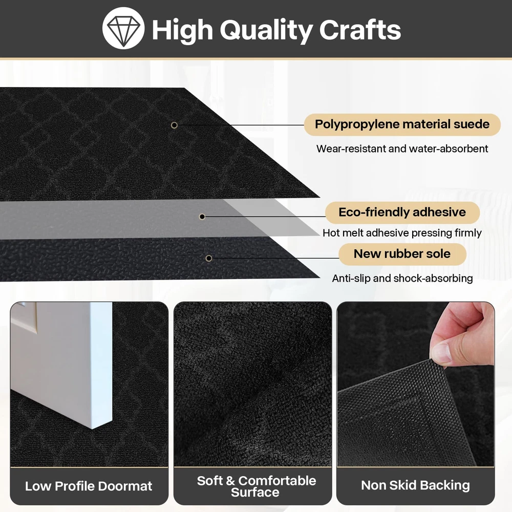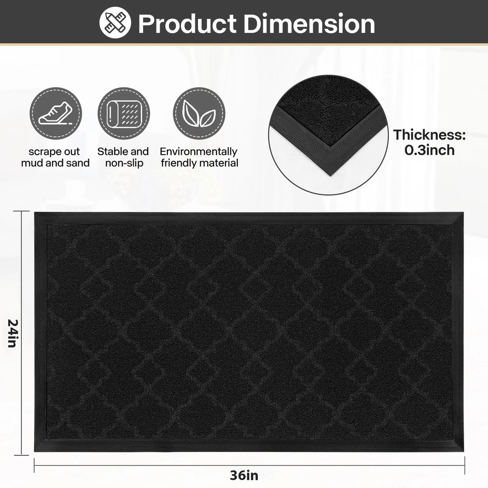 Dirt Trapper: The surface of welcome mat for front door is made of high quality polypropylene, which is more effective in trapping dust, dirt, sand or other debris and preventing them from entering the room, thus keeping the indoor floor clean and tidy. Natural Rubber and Non-Slip: The natural rubber backing of the outdoor doormat has higher tensile strength and tear resistance and less odor than synthetic rubber, plus this outdoor doormat grips the ground firmly on both dry and wet surfaces, keeping you safe and comfortable with your home. Widely Use: Our doormats for outdoor are used for all weather, very suitable for indoor, outdoor, front door, side door, walkway, entrance, hall, garage, patio, barn or any other heavy duty areas. Low Pile: The low profile makes our dirt trapper mat outdoor suitable for most entrances. The door can be opened and closed smoothly without the risk of tripping. Easy to Clean: The dirt trapper door mat outdoor is very easy to clean, you can clean it with vacuum cleaner or sweep with a broom, or tap the backing and shake the indoor entrance door mat. If it need a deeper clean, use a garden hose to rinse the doormat, and hang it in a ventilated place to air dry it.