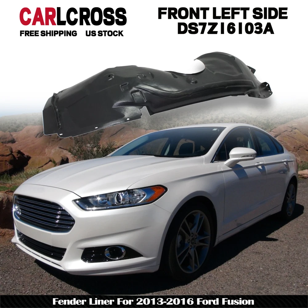 Fender Liner For 2013-2016 Ford Fusion Front Driver Side DS7Z16103A FO1248159 Description Replacement Fender Liner REPLACEMENT FENDER LINER Replacement fender liners perform just like the original to protect your engine compartment from dirt, mud, water, and other contaminants. Each Replacement fender liner is made to factory specifications, allowing you to easily restore your vehicle to its original condition. Features & Benefits: Easy to Install Designed as a direct replacement for your original fender liner. Keeps factory ducting for brakes or fluid coolers. Made to factory specifications for a hassle-free installation, guaranteed. Premium Protection Durable, high-quality construction defends against dirt, mud, water, and other contaminants. Ready to restore your vehicle to like-new condition. Benchmark Design and Manufacturing Processes Replacement brand fender liners are the result of extensive research and development, ensuring a state-of-the-art design and flawless performance. Lean manufacturing process keeps costs down and quality high. One-Year Unlimited Mileage Warranty Every Replacement fender liner comes with a one-year unlimited mileage warranty for peace of mind. Notes Location : Front, Left Brand New in the Box - Fit and Quality Guaranteed! Anticipated Ship Out Time Same day - 1 business day Quantity Sold Sold individually Replaces OE Number DS7Z16103A Replaces Partslink Number FO1248159 Interchange Part Number DS7Z16103A, FO1248159 Prop 65 Warning WARNING: This product can expose you to chemicals including Chromium, Lead and lead compounds, which is known to the State of California to cause cancer and birth defects or other reproductive harm. For more information go to www.P65Warnings.ca.gov. For Online Marketplace For Online Marketplace Returns Policy 30-Day Return Policy Insulation Foam With Insulation Foam Location Left, Front Compatible with the following vehicles: Ford 2014-2016 Fusion S Hybrid 2013-2016 Fusion (submodel: Energi SE, Energi Titanium, S, SE, SE Hybrid, Titanium, Titanium Hybrid) On Jan 24, 2025 at 06:59:18 PST, seller added the following information: