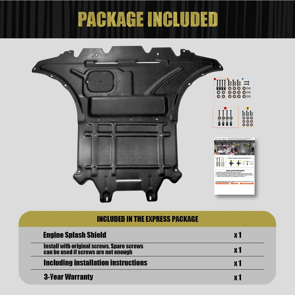 Product View Detail 1)Package Included: 1 X Engine Splash Shield ,Screw.Installation instructions 2)Material:Plastic steel Plastic steel is a kind of PVC profiles, due to its physical properties such as rigidity, flexibility, corrosion resistance, anti-aging performance, is usually used as copper, zinc, aluminum the best substitution.And is especially suitable for automobile chassis protect. 3)Better Than Original: The thickness is three times that of the original one. The original plate problem is that too thin ,broken down, easily falling off, and the hardness is not enough. To solve these problems,The new engine splash shield professionally designed . The steel beam design is to increase its hardness. 4)Wider Protection Range:it is Not 1:1 to the original Engine guard.Wider Size It is an upgrade to the original Engine guard.The new Engine guard covers a wider range. Provide wider and more robust protection. It will be larger, harder and more durable. 5)3-YEAR WARRANTY:Quality assurance We offer a 3-year quality warranty. it does not include damage caused by Human factors or External object impact. 6)EASY TO INSTALL :We provide installation instructions. Remove the original engine splash shield, Find the new screw hole ,Secure the new engine splash shield with screws. Suggest professional installation, under normal circumstances, do not need to drill holes.the car model changes, may need to drill holes. you can proactively contact us any question. We will reply within 24 hours(Excluding holidays ). Shipping Policy Payment Method Returns Policy Shipping Policy Please provide the correct address and phone number 1) We only ship to the confirmed address provided by eBay. Before you pay, please make sure your address in eBay matches the address you would like us to ship to. we must have your correct telephone number and address for express delivery to your door. Fast Shipping 2) For domestic shipments in the United States, we usually ship through FedEx, UPS, and USPS. Usually your goods will arrive within 1-7 working days. If you encounter a delay in the arrival of the goods, please contact us. 3) We ship to worldwide via international post airmail, FedEx,UPS,DHL The items will arrive to you about 5-15 days. I mport duties,taxes are not included in the item price or shipping charges, the buyers will be responsible for the taxes if necessary. Payment Method Returns Policy Copyright © 2017 DataCaciques Home Payment Shipping About us Contact us Product View Detail 1)Package Included: 1 X Engine Splash Shield ,Screw.Installation instructions 2)Material:Plastic steel Plastic steel is a kind of PVC profiles, due to its physical properties such as rigidity, flexibility, corrosion resistance, anti-aging performance, is usually used as copper, zinc, aluminum the best substitution.And is especially suitable for automobile chassis protect. 3)Better Than Original: The thickness is three times that of the original one. The original plate problem is that too thin ,broken down, easily falling off, and the hardness is not enough. To solve these problems,The new engine splash shield professionally designed . The steel beam design is to increase its hardness. 4)Wider Protection Range:it is Not 1:1 to the original Engine guard.Wider Size It is an upgrade to the original Engine guard.The new Engine guard covers a wider range. Provide wider and more robust protection. It will be larger, harder and more durable. 5)3-YEAR WARRANTY:Quality assurance We offer a 3-year quality warranty. it does not include damage caused by Human factors or External object impact. 6)EASY TO INSTALL :We provide installation instructions. Remove the original engine splash shield, Find the new screw hole ,Secure the new engine splash shield with screws. Suggest professional installation, under normal circumstances, do not need to drill holes.the car model changes, may need to drill holes. you can proactively contact us any question. We will reply within 24 hours(Excluding holidays ). Shipping Policy Payment Method Returns Policy Shipping Policy Please provide the correct address and phone number 1) We only ship to the confirmed address provided by eBay. Before you pay, please make sure your address in eBay matches the address you would like us to ship to. we must have your correct telephone number and address for express delivery to your door. Fast Shipping 2) For domestic shipments in the United States, we usually ship through FedEx, UPS, and USPS. Usually your goods will arrive within 1-7 working days. If you encounter a delay in the arrival of the goods, please contact us. 3) We ship to worldwide via international post airmail, FedEx,UPS,DHL The items will arrive to you about 5-15 days. I mport duties,taxes are not included in the item price or shipping charges, the buyers will be responsible for the taxes if necessary. Payment Method When you make a payment,please make sure the following information is included: . Name: . Full and Correct Address: . Post code: . Phone number: please make sure your address in ebay matches the address you would like us to ship to. Returns Policy 30 day free return. Please ensure that the product, accessories, and outer packaging are intact On Jan 17, 2025 at 01:47:22 PST, seller added the following information: