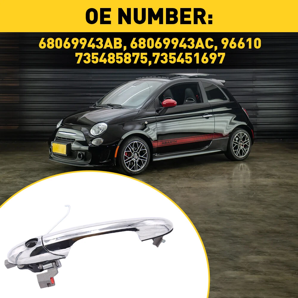 WARNING: This product can expose you to chemical which is k Features With Key Hole Finish Chrome Fitment Type Direct Replacement Interchange Part Number 68069943AC 2019 2018 2017 2016 2015 2014 2013 2012 Fiat 500 Front, Driver Left Side Hatchback Convertible 4Cyl -Cyl 1.4L -- Sport Lounge Pop c Lounge c Pop Abarth c Gucci Gucci E Turbo Abarth Cabrio Easy c Easy 1957 Retro Edition E Manufacturer Part Number 14547827 Manufacturer Warranty 1-year unlimited-mileage warranty OE Number 68069943AB, 68069943AC, 96610, 735485875,735451697 OE/OEM Part Number 68069943AC Part Name Exterior Door Handle Performance Part No Placement on Vehicle Left, Front Quantity Sold individually Superseded Part Number 68069943AC 2019 2018 2017 2016 2015 2014 2013 2012 Fiat 500 Front, Driver Left Side Hatchback Convertible 4Cyl -Cyl 1.4L -- Sport Lounge Pop c Lounge c Pop Abarth c Gucci Gucci E Turbo Abarth Cabrio Easy c Easy 1957 Retro Edition Ex Type Exterior Door Handle Color Black Number of Pieces 1 Material ABS Payment Variety of payment methods are accepted, such as credit, debit, gift cards, Apply pay, Google Pay, Paypal and Paypal Credit. Shipping 1. All items will be shipped in 24 hours after receiving your payment . 2. We ship this item to US only via USPS first class mail. It usually takes 3-5 working days to deliver. Returns 1. We offer 60 days return policy. 2. Please contact us if you have any questions with the products . 3. Refund will be sent after we got your returned package. 4. All returned items should be in the original packaging with tracking number. Contact Us We work from Monday - Saturday 9:00AM - 6:00PM, but we will reply once we get your message. There will be delay on response if you send message or E-Mail on Sunday. All rights reserved. On Dec 30, 2024 at 19:02:19 PST, seller added the following information: