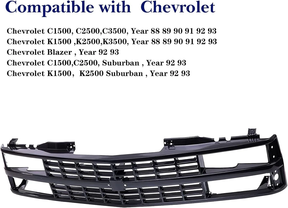 Front Grille Black Shell With Black Insert Grill Compatible With Chevrolet 1988-1993 C/K 1500 2500 3500 &1992-1993 Blazer Pickup Truck Vehicle Service Type Truck Installation Type Insert Fitment details: For 1988 1989 1990 1991 1992 1993 Compatible With Chevrolet C1500 C2500 C3500 K1500 K2500 K3500 Blazer C1500 Suburban C2500 Suburban K1500 Suburban K2500 Suburban Color : Black Placement on Vehicle : Front Replaces OE Number: 15615108 88960431 Replaces Partslink Number:GM1200228