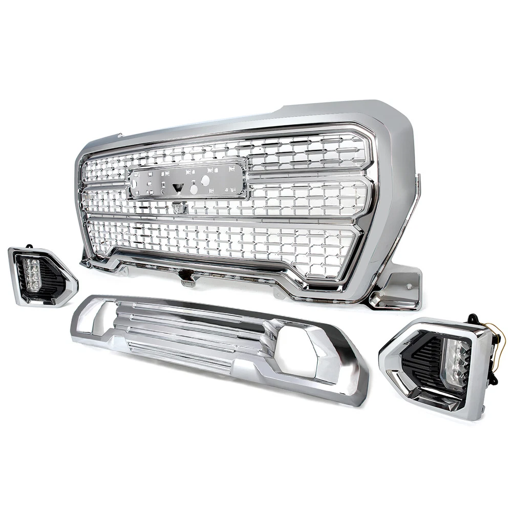 Front Grille Fog Light W/ Bezel Trim Fit 2019 2020 2021 GMC Sierra 1500 Denali We appreciate you place an order, If you are satisfied with the item and our total service, Please take a moment to leaving us a POSITIVE FEEDBACK and perfect " 5 STAR " scores, If you have any problem with your purchase,shipment,return/exchange,or any others, Please contact us firstly,so that we can satisfactorily address your concerns, We will give you our best item and service. Specification: Condition: 100% Brand New Color: Chrome Style: Denali Style Material: High Quality ABS Plastic Placement on Vehicle: Front,Upper,Lower,Left,Right Surface Finish: Painted Package Size:152*61*20cm(59.84"*24.01"*7.87") Gross Weight: 22.04LB (10KG) Features: - Easy install and durable use. - Great quality and great fitment. - 100% brand new and high quality guaranteed. - Strict quality control standards to build and test. - Useful,helpful and so practical. - Factory bolt-on fitment,no vehicle modifications are required. Fitment: Fit For GMC Sierra 1500 Denali 2019-2021 Fit For GMC Sierra 1500 AT4 2019-2021 Package Include: 1Set Front Bumper Grille&Fog Light Bezel Kits Note: -Please check the size measurement chart carefully before making payment. -Please allow 0.5-1 inch difference due to manual measurement.(1 inch=2.54cm) -The color of the actual items may slightly different from the listing images due to different computer screen, thanks for your understanding. -Instruction is not included. -Professional Installation Recommended. 1.We Accept Payment Through Paypal Only. 2.The eBay members must fulfill the requirement.(PayPal verified and confirmed address; the account holder must be the receiver). 3.Please complete your payment within 2 days after the item is won.If you have difficulty completing your payment within the required time, please contact us.Non-Pay Dispute will be filed against your account after the 2th day. 4.Our price does not include Duties,Value Added Taxes,Customs Clearance Fees,and other charges. These charges are the buyer's responsibility.Please check with your country's customs office to determine what these additional costs will be before bidding/buying. 5.The buyer needs to pay for the above fees in case that occurred for certain goods.If the parcel returns back to us due to the buyer refuse to pay those fees,we would not send the parcel again unless the buyer completes those fees and pay all the return and resend cost.The buyer can not cancel the order or request a refund due to this reason. 1.Free Shipping with FedEx/UPS/USPS to the Mainland 48 states ONLY 2.PO Box,AK/HI/PR and APO/FPO address will not be accepted. 3.Package will be shipped to your eBay shipping address within 48 hours(except for weekend and public holiday) after payment is cleared. 4.Payment cleared/received on Friday will be shipped on the next business days (Monday or Tuesday) 5.Order is typically shipped in 1-2 business day after payment is completed. Shipping confirmation with tracking number will be sent to your eBay email address when your order is shipped. Please note that we do not ship orders on Saturdays,Sundays,and national holidays. 6.All our items will be shipped to the address you submit, please confirm your address on before you bid or purchase. 7.Shipping time may vary depends on your area. Delivery may be delayed due to extreme weather or special circumstances. Please wait patiently. -All items sold by us are being described to the best of our abilities,as accurate as possible,and with utmost conscientiousness on our part.However,to avoid any potential oversights,we respectfully request your assistance in helping us to make this a mutually satisfactory transaction by THOROUGHLY reviewing item description and photos,and asking all questions PRIOR TO BIDDING. -We stand behind the quality of all of our products.All products are double inspected before stocking and dispatching.However,sometimes mistake may slip by and the product may get damaged during the process of delivery.If such trouble occurs to you,please take a minute to refer to the following instruction. -If the package arrives at your location with obvious shipping damage (including broken envelop,empty package and etc),please refuse the shipment. -If you find the item is defective after you accept the shipment,please save everything that is attached in the package,including all the documents,and contact us immediately,either through eBay message or email address. -You should state your item ID,item title and what the damage is clearly in your email.And please be advised that digital photos must be attached to the email you send. -And please bear in mind that you should contact us within 3 days since the day you receive the package,or it will be your own responsibility to take the lost of the defective item. Welcome to our Ebay store. We are professional of selling premium quality auto parts. All kinds of modified and aftermarket body parts for BMW,Benz,Ford,Audi,Jeep,Chevrolet and so on. For more details,please contact us. Thank you for your business. Certain images and/or photos used in this template are the copyrighted property of Macmillan digital publishing USA and are used with permission. Specification: Condition: 100% Brand New Color: Chrome Style: Denali Style Material: High Quality ABS Plastic Placement on Vehicle: Front,Upper,Lower,Left,Right Surface Finish: Painted Package Size:152*61*20cm(59.84"*24.01"*7.87") Gross Weight: 22.04LB (10KG) Features: - Easy install and durable use. - Great quality and great fitment. - 100% brand new and high quality guaranteed. - Strict quality control standards to build and test. - Useful,helpful and so practical. - Factory bolt-on fitment,no vehicle modifications are required. Fitment: Fit For GMC Sierra 1500 Denali 2019-2021 Fit For GMC Sierra 1500 AT4 2019-2021 Package Include: 1Set Front Bumper Grille&Fog Light Bezel Kits Note: -Please check the size measurement chart carefully before making payment. -Plea