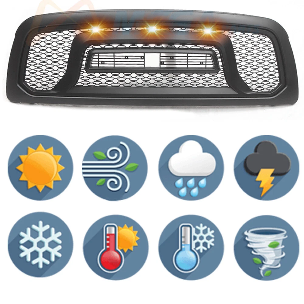 Product Description Front Grille for 2009-2012 Dodge Ram 1500 Accessories Black w/Letters LED Grill (With all letters & Ships with 1 working day after payment ) Stock in US and will be shipped out in two business days(mostly in one weekday) from CA Led lights and letters include. Made of high quality ABS plastic with matte black finish. Any question,please contact with us. FEATURE This Grille not only adds great styling to the front end of your RAM, but it will also increase airflow across the radiator - when compared to the stock grille. This additional air helps to improve engine cooling, which in turn improves performance. Simple Straight Forward Installation. There is no cutting or modifications required for a clean straightforward installation. Installation can be completed in about 1 hour with just basic hand tools. FITMENT: For 2009 2010 2011 2012 Dodge Ram 1500 PACKAGE INCLUDE: 1x Grille 3X Letters R/A/M 3x Amber LED Lights 1x Wiring Harness ! Note: 1. If You Can't Make Sure It's Will Fit Or Not Please Send Us You Model Car Photos. Thanks !!! 2. Customer satisfaction is our number one priority. Please contact us to resolve any problem before leaving neutral or negative feedback. 3. Please check compatibility table, item specifics, part numbers as well as the product description to ensure this is the correct part for your vehicle. 4. Instruction not included. Professional installation is always recommended. 5. Any damaged products due to non-professional or user error may not be returned for refund. About US payment Shipping Return Contact US *Have any questions,please send us a message and we will help you solve them. *Please do not open the return and dispute at will. Once it is opened, it will affect our view of the specific information of the order, which is inconvenient for us to solve the problem. * If you receive the goods and are satisfied , please give us a good comment, we will give you a good comment; *Do not feel free to give bad reviews, because bad reviews can not solve the problem, only contact us to let us know what problems you encounter, we can help you solve. Thank you. * We specialize in aftermarket performance parts and accessories. Our goal is to strive for the highest level of customer service to ensure the satisfaction of all our customers. * We work hard with our suppliers to find the best products, at the lowest prices from brands that you know and trust. * We have contracts in place with major shipping providers to help ship and deliver our products to the consumer fast and efficiently. Our average processing / handling time is less than 24 hours and about 95% of our shipments arrive earlier than the expected arrival dates. Based on eBay new policy,We accept payment by PayPal only. PayPal enables you to send payment quickly and securely online.We do not accept other payment methods. 1、Tracking number will be emailed to you once we have shipped your order.If there is any delay,it may be caused by bad weather or custom inspection.If you still can not receive the item with in 7 Days,please contact us.You can track your parcel on the following website using your tracking number: 17track (Copied to the browser to open) 2、We try our best to make you get desired products as soon as possible.In case you receive wrong products due to shipping error,please contact us for exchange or refund.If it is damaged,please refuse to acceot and contact us as soon as possible. 3、We are not responsible for wrong or undeliverable address.Please provide us your full address with Telephone number and make sure your shipping address is correct and deliverable.If you need to change your address,please change it in PayPal first before you pay. 30 Days Return & Exchange Policy: * We give you a 30 days money-back guarantee to return any items purchased, no questions asked, hassle-free. * You can return for refund or exchange same product or different product (difference of price will be charged) within 30 days after you receive the item. * Any returning or exchanging items must be in the original package and new condition. We reserve rights to refuse refit or damaged items (caused by buyer) for return and exchange. * No returns will be accepted if you contacted us after 30 days of receiving the item. * Return fee: Buyers are responsible to pay the return shipping fee. 15% restocking fee on total price will be charged and be deducted from the refund total. * Exchange fee: No restocking fee will be charged, however Buyers are responsible to pay the return shipping fee and exchange reshipping fee , depending on the weight of merchandise. * Email our Customer Service Department first before return the item back . Please specify your item number, your eBay ID, and the reason for the return. 60 Days Warranty Policy * Defective Return & Exchange : To help process this faster, please provide detailed description explaining the problem and attach photos of damaged products as well. If we authorize the return, you will be receiving an email with instructions on the return. * We give you a 60 days warranty to exchange any defective items. Within 3 days after you receive the item, Pre-paid return label or shipping fee will be provided if it is necessary. After 3 days, buyers are responsible to pay the return shipping fee to send item back to us. We will cover the replacement shipping fee. Defective products only can be exchanged for the exact same product within 60 days after the date of sale. No exchange will be accepted if you contacted us after 60 days of receiving the item. 1.Huge selections of car parts for you. Best quality with factory price. 2.Please contact us if you have any questions. About US *Have any questions,please send us a message and we will help you solve them. *Please do not open the return and dispute at will. Once it is opened, it will affect our view of the specific information of the order, which is inconvenient for us to solve the problem. * If you receive the good
