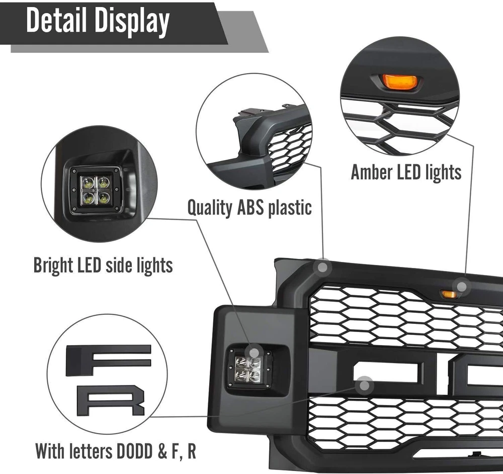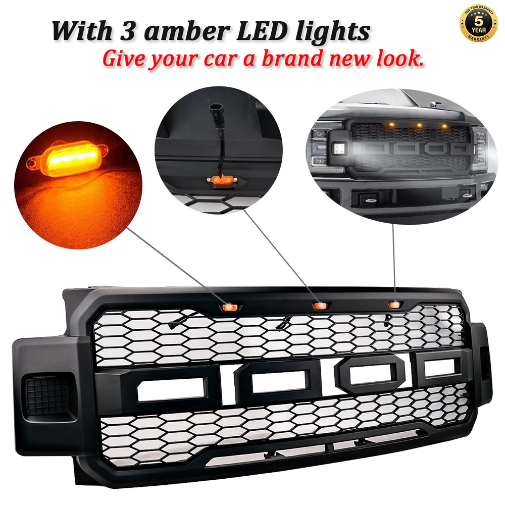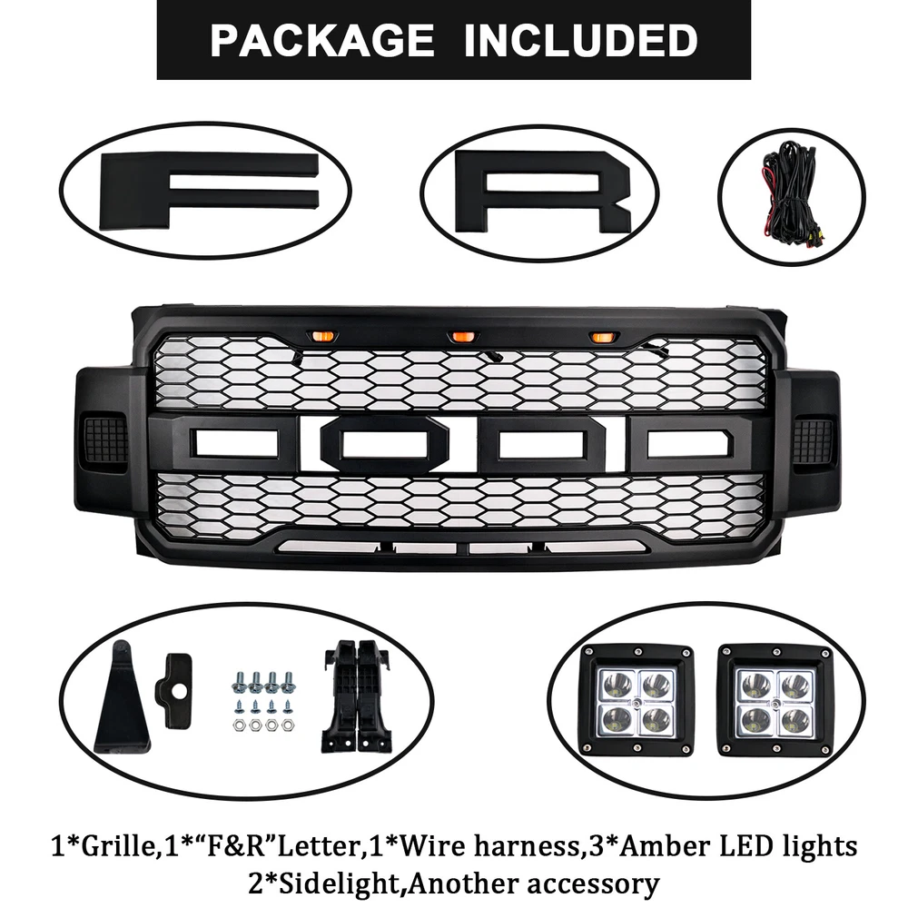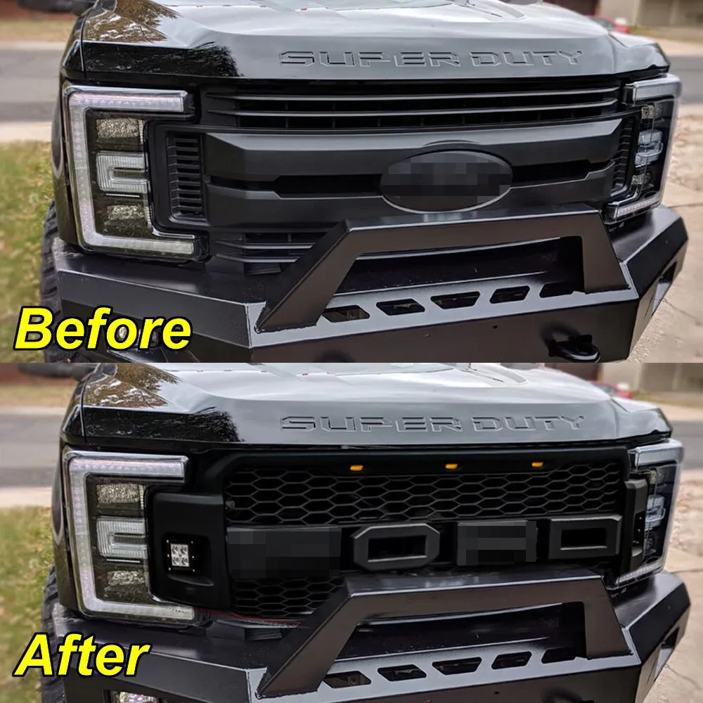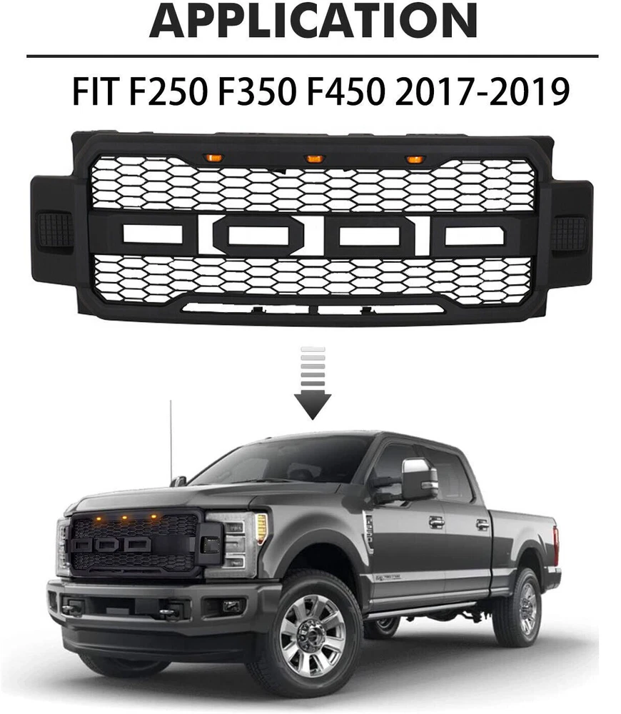 Product Includes: 1PC Front Grille(with 3pcs Amber LED Lights) 1PC F&R Letters 2PCS Sides LED Lights 1PC Wire Harness Fitment✅: Fit for 2017 2018 2019 Ford F250 F350 F450 F550 Super Duty Model (Does not have mount for front camera.) Note‼️: ♦ This front grille don't fit for F150 Model. ♦ Please check if the item fits your vehicle before you purchase. ♦ Instruction will NOT be provided, Professional installation is recommended. ♦ Please search "17-19 Ford Super Duty R Style Grille Install" on YouTube and watch the videos how to install. Specifics: Style: New R Style Color: Matte Black Material: High Quality ABS Condition: 100% Brand New in Box Features: ♦ Made of High Quality ABS Plastic. ♦ 100% Brand New Matte Black R Style Grille. ♦ Strict Factory QC test , High Quality guaranteed. ♦ A Lastest New Style of Ford F250 F350 Super Duty 2017-2019. ♦ You could paint the grille in style you need. Make it looks more cooler. ♦ An excellent replacement of your old fashion stock grille, which gives your car a unique luxury look in the crowd. Return: 1. Out 30-day Satisfaction Guarantee assures our customers that they will receive all orders promptly and exactly as described. 2. In addition, it allows customers to return new and unused products in their original factory condition for any reason within 30 days from the date of purchase. Delivery: 1. All packages will be shipped within 1 business days, and the estimated delivery time is 1-5 working days, you need to wait patiently. 2. If you have any questions or issue about delivery, please contact us via eBay Messages and we will do our best to ensure that you are satisfied with us. On Jan 5, 2025 at 21:17:00 PST, seller added the following information: