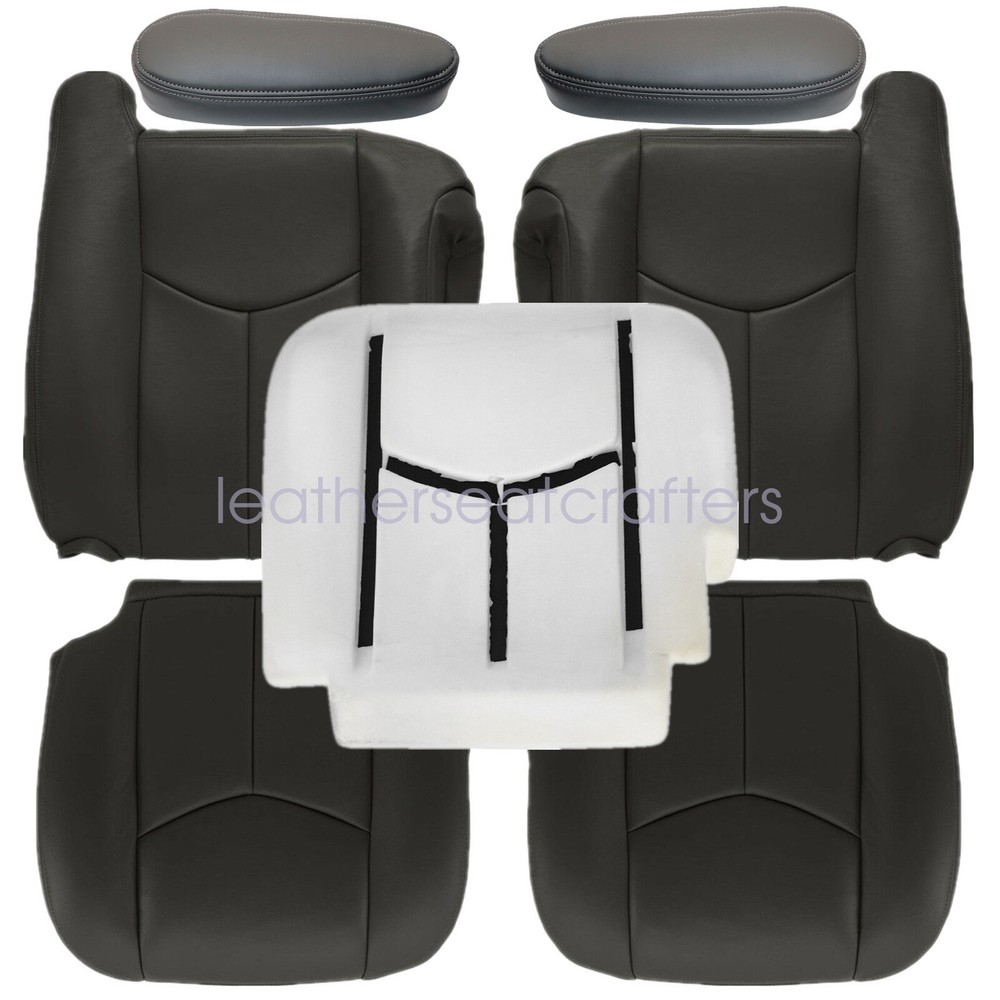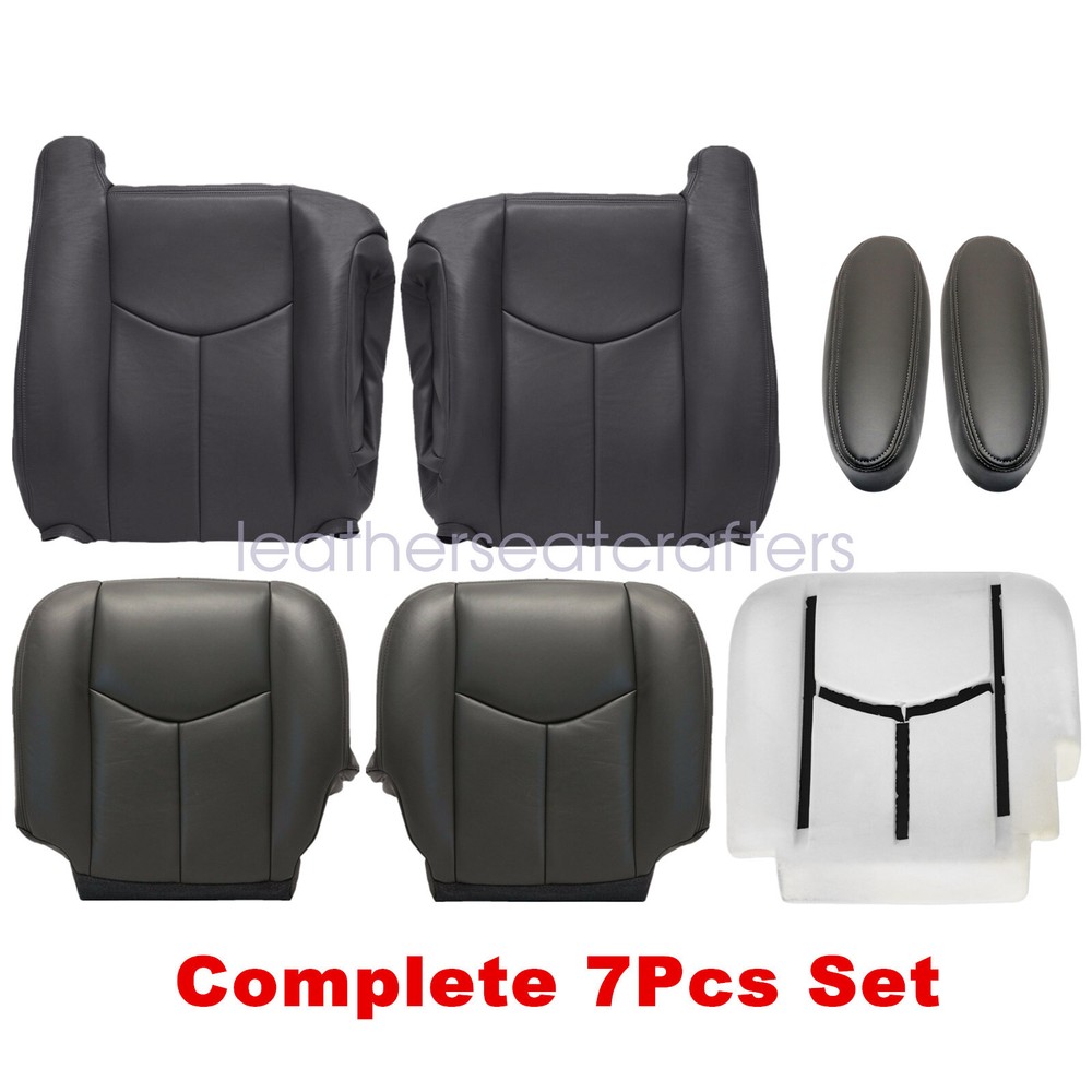 Front Leather Seat Cover & Foam Cushion For 2003-2006 Chevy Silverado Dark Gray Details Driver & Passenger Replacement Seat Cover & Foam Cushion & Armrest Cover Dark Gray Fits 2003-2006 Silverado, Sierra, Avalanche, Manual & Powered Seats Specifications: Name: Driver & Passenger Replacement Bottom & Back Leather Seat Cover & Foam Cushion & Armrest Cover Material: Leather & Foam Color: " 692 or 69i or 69v " Dark Gray Make: Chevy/GMC Model: 2003 2004 2005 2006 Chevy Silverado, Avalanche, GMC Sierra Heated Seats: Fits Heated Seats and Non Heated Seats Power Seats: Fits Power Seats and Non Power Seats Vehicles Seat Cover's Attached Padding: ½ Inch attached foam padding Fitment: 2003, 2004, 2005, 2006 Chevy Silverado 2003, 2004, 2005, 2006 Chevy Avalanche 2003, 2004, 2005, 2006 GMC Sierra Important Notice: If your seat is a power seat, you will need to cut a small cut in the side of the seat cover for the seat control switch, very simple. Package Content: 1Set Driver & Passenger Replacement Leather Seat Cover (2x Bottom Seat Cover & 2x Back Seat Cover) 1Pcs Driver Bottom Foam Cushion 2Pcs Armrest Cover (Driver & Passenger) If you do not know how to install, please contact us,We can provide video installation instructions Tips: This Driver & Passenger Replacement seat cover & Armrest Cover, built to factory specs with Quality Leather to match the Interior of your vehicle! Our product is exactly the same as your existing cover and guaranteed to fit perfectly on your seat foam Pad. Any wrinkles seen in the pictures is from being in a box and guaranteed to disappear once installed Correctly. (Foam pad and frame are not included). Please Note: Actual Replacement Cover. NOT A SLIP ON or PULLOVER. You will remove the old cover & then install the New Cover. Communication is the best way to solve the problem. If you have any problems after purchasing, please contact us in time, before opening return or case. Shipping policy: Payment: Returns: About us: Shipping policy: 1.Orders are usually shipped within 24 hours after your payment(except weekends & official holidays). You can log on to eBay to check your logistics tracking number. 2.Please make sure to provide us with correct,precise and detailed shipping address before purchase, and cannot change it once purchased. Payment: PayPal payment accepted only.Please purchase and pay for the item through the eBay. Returns: 1.If any item is defective upon receipt or do not work, please contact us for the condition,we will provide a solution for such cases. 2.Return is accepted within 30 days after the buyer receiving the item. About us: 1.Thanks for purchasing in our store,if you have any questions, please contact us immediately. We will provide you with the high quality service. 2.If you are satisfied with our products, please give us a positive feedback. On Dec 21, 2024 at 16:00:46 PST, seller added the following information: